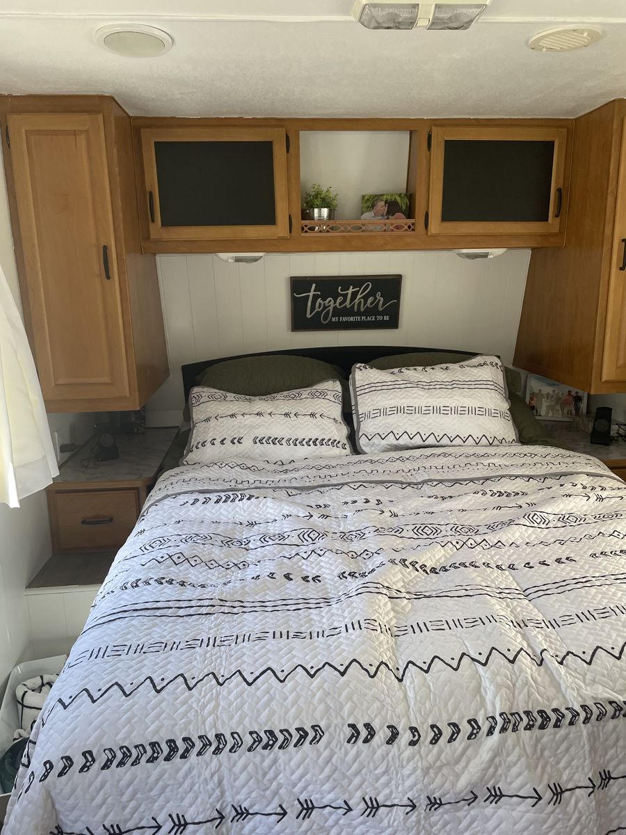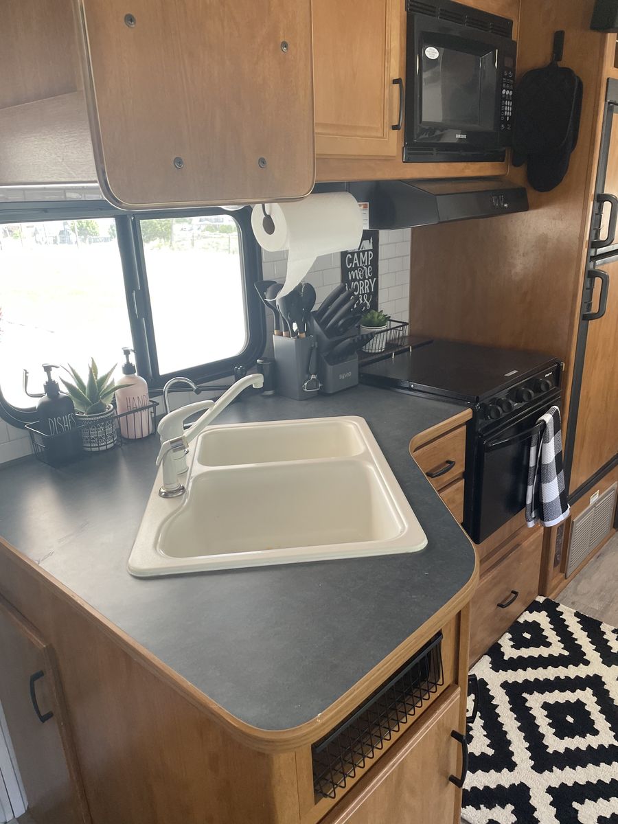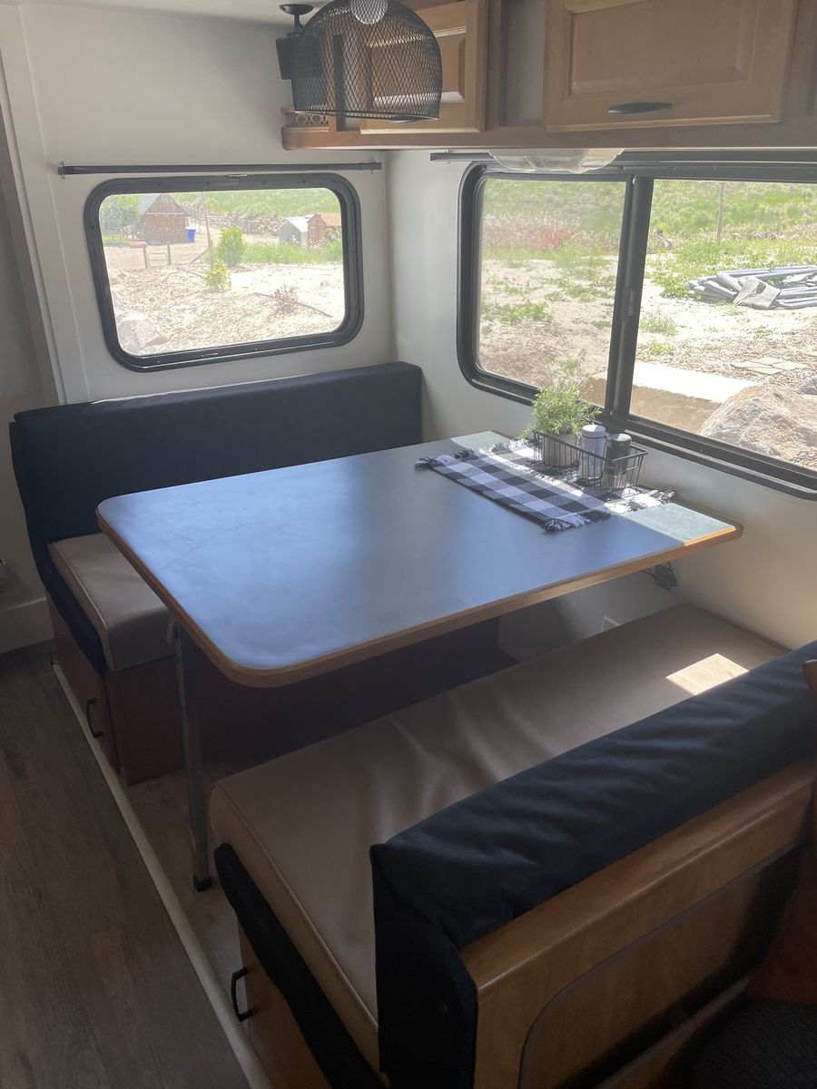 VenmoCompletely remodeled inside that has a modern design on it. 27ft long with 1 slide out that makes it as roomy as it can be. Around 6,000-7,000 pounds.
