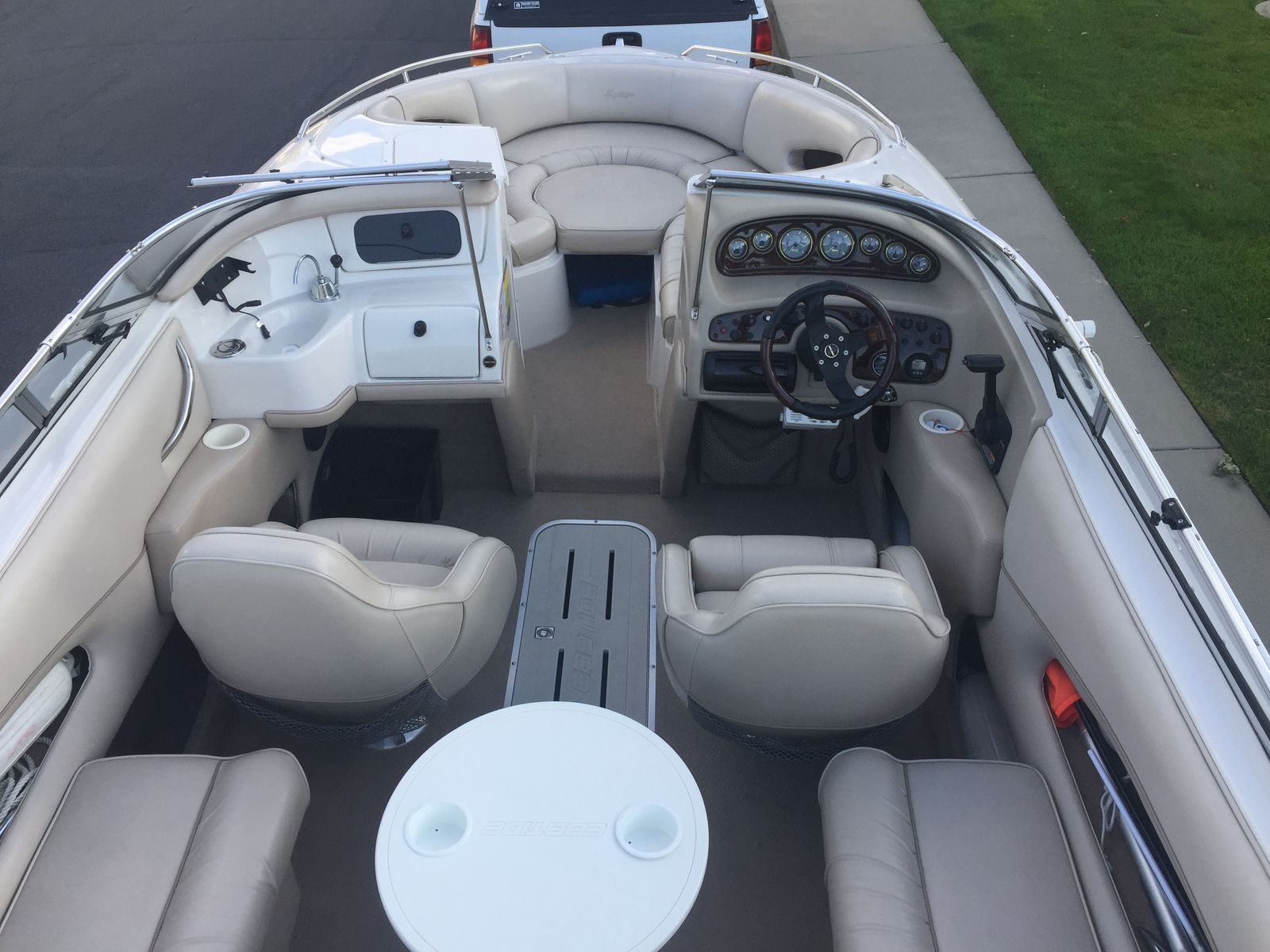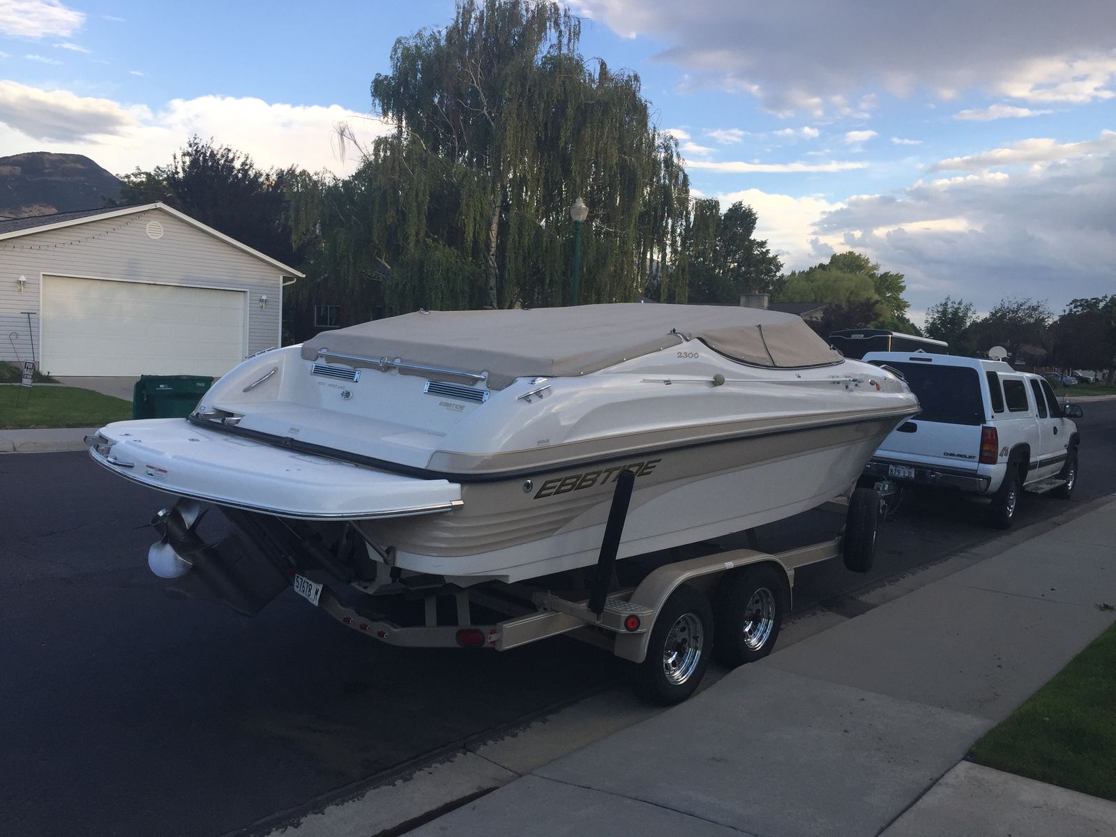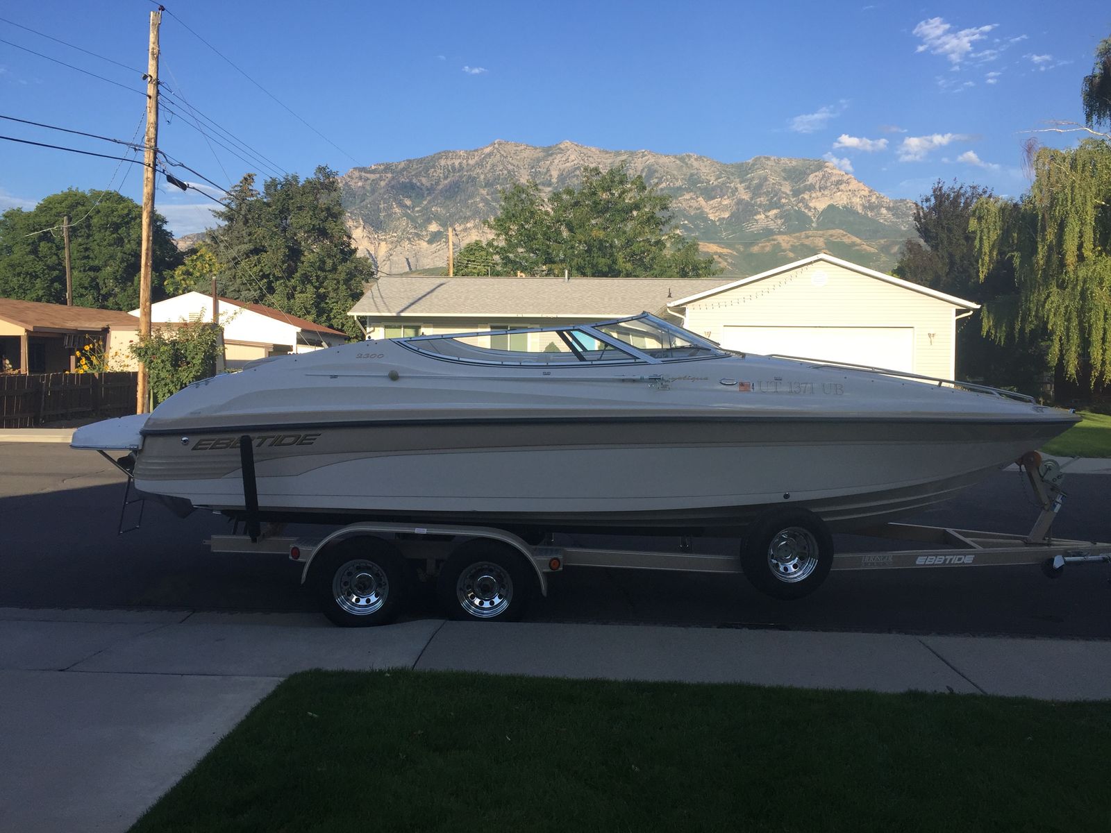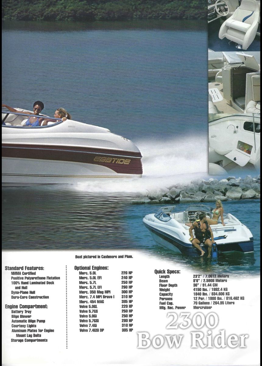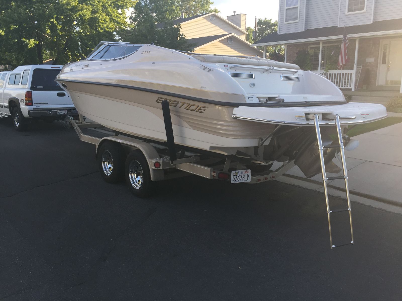 It's a 2001 23' Mystique Ebbtide. It's in great condition. We added the extended swim deck. It also has the bimini. It has a Volvo Penta 5.7L GXi V8, around 300–320 HP paired with a Volvo Penta DuoProp stern drive