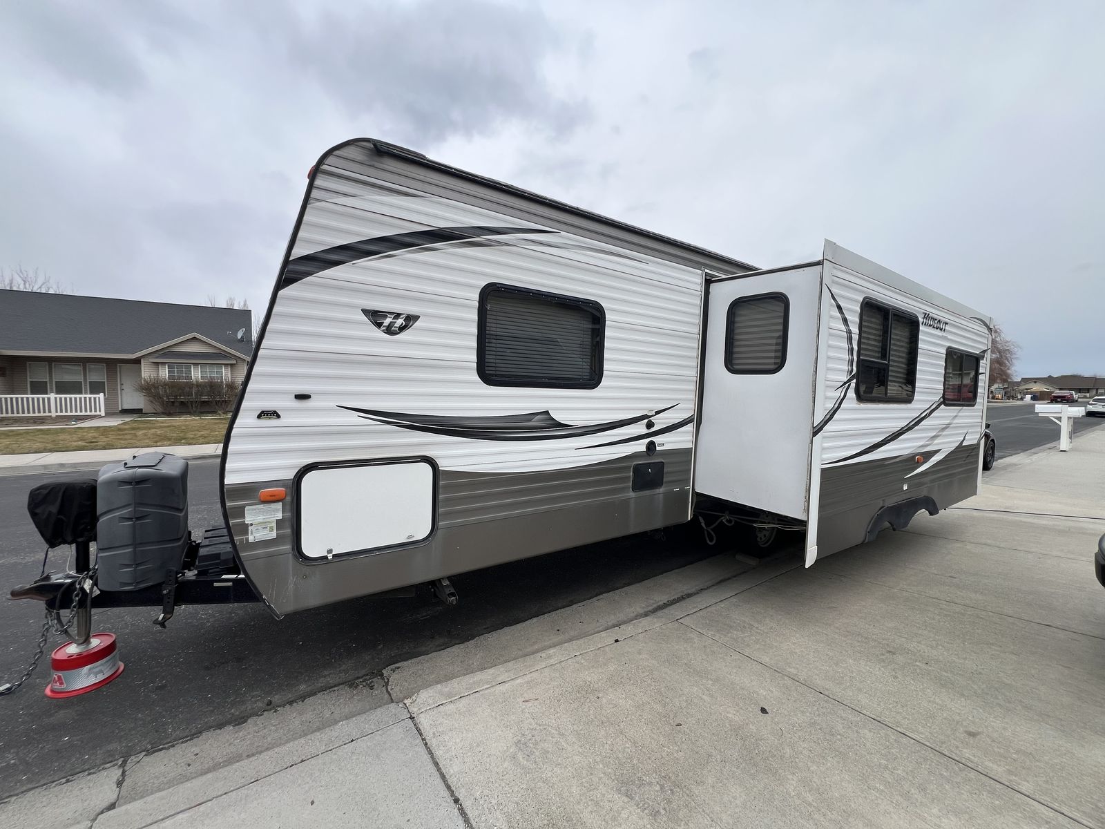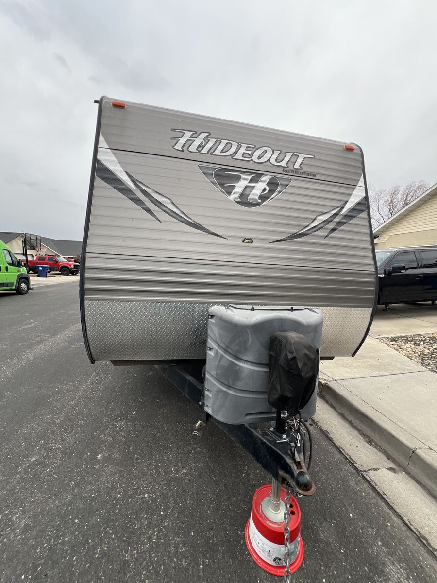2016 Keystone Hideout 26RLSWE bumper pull trailer in great condition. Dual batteries, portable solar panel plug in, power tongue jack and super duty rear hitch. Couch folds out into a queen sized bed as well as the u-shaped table. Lots of storage under bed and in front. TV with stereo and speakers inside and out. Outdoor quick connect LP plug for grills. $14,500 OBO