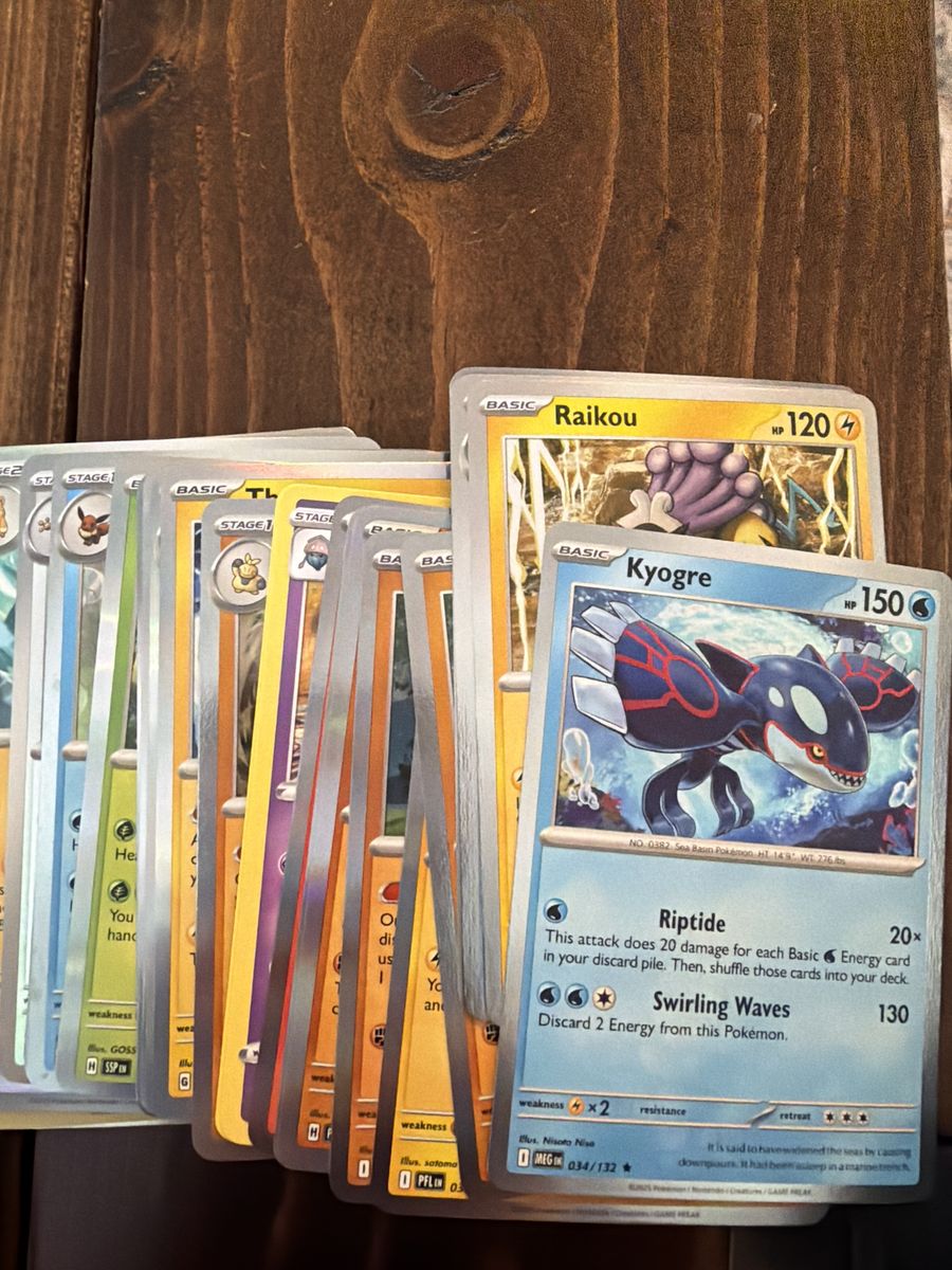Selling bulk pokemon cards from: prismatic evolution, white flame and black bolt, mega evolution, surging sparks. I am asking $40 and I’ll throw in the card holder as well.