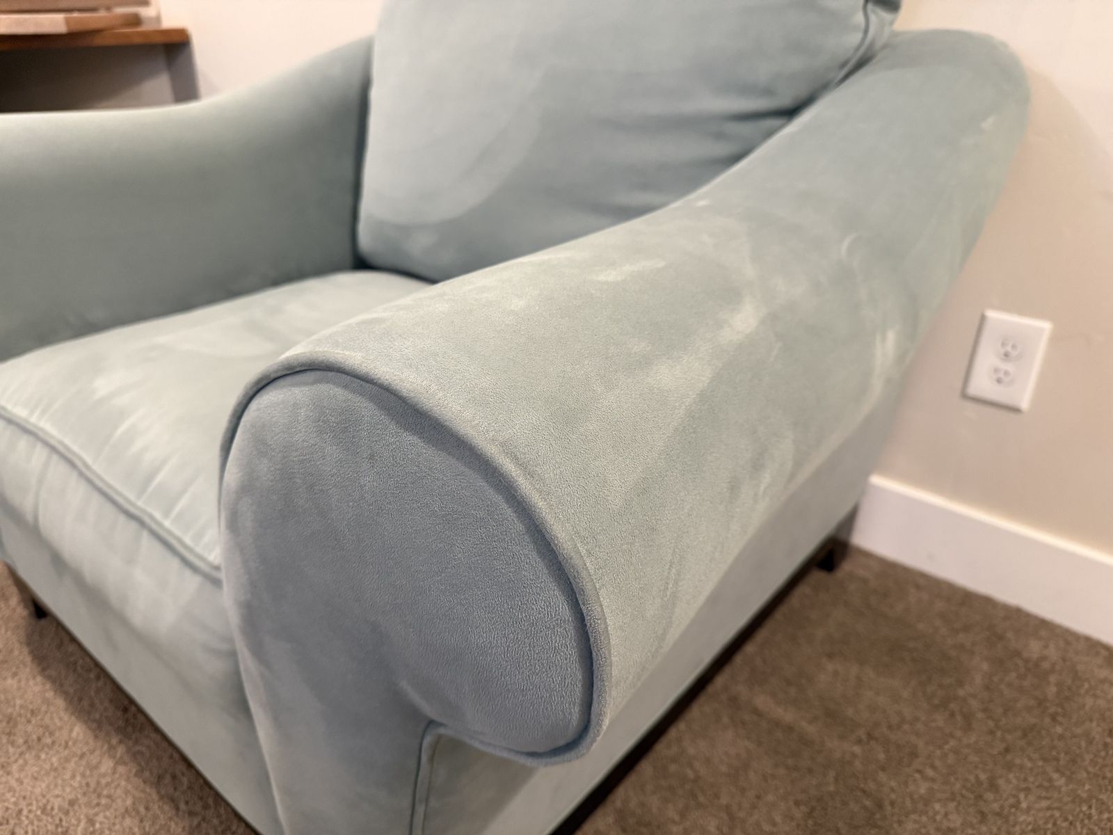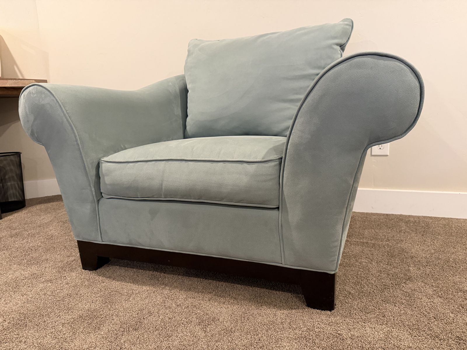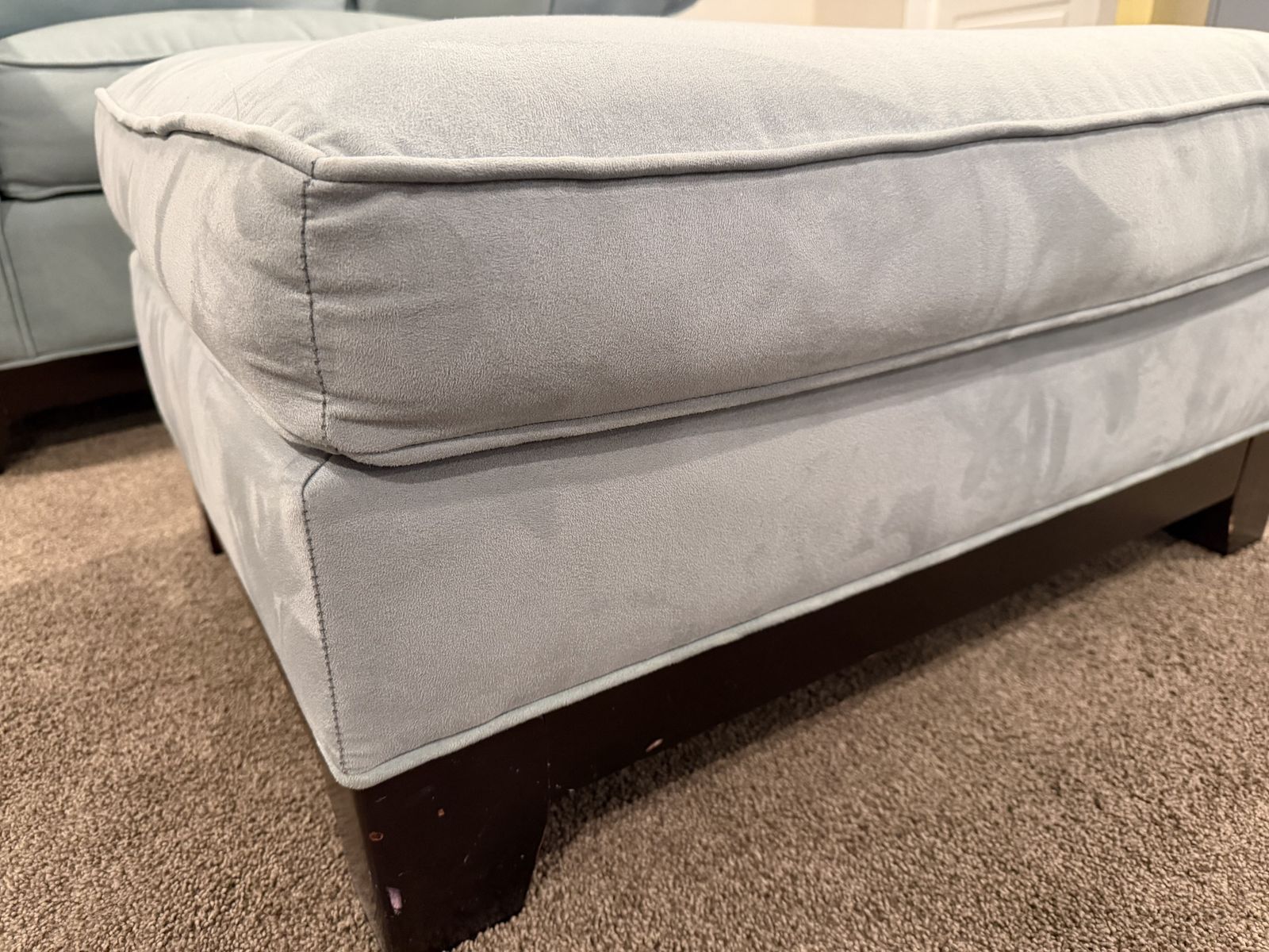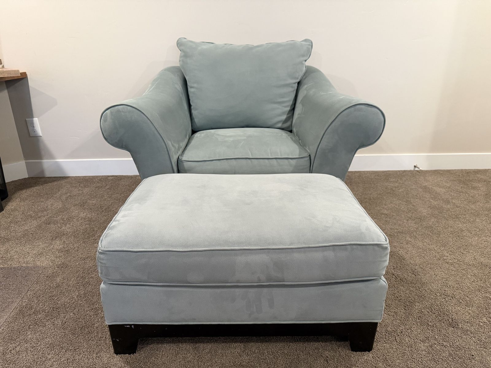 VenmoLoveseat, chair, and ottoman in a nice light blue soft fabric. Minimal wear, looks brand new. includes accent pillows. This is in a pet free and smoke free home, no weird or quesitonable stains etc. They are very comfortable. Detailed photos to show the condition. These were almost never used; we are using that room for a differnet purpose so it is time for these to go. Price is OBO.