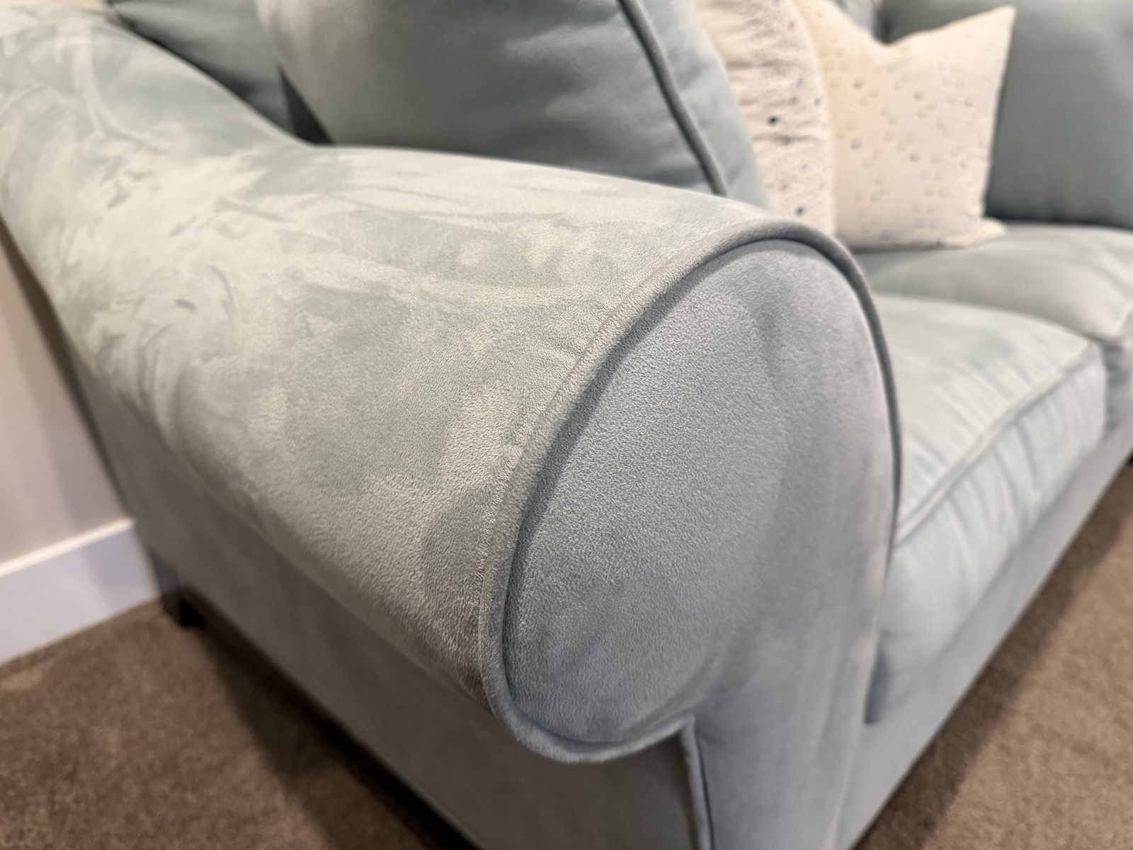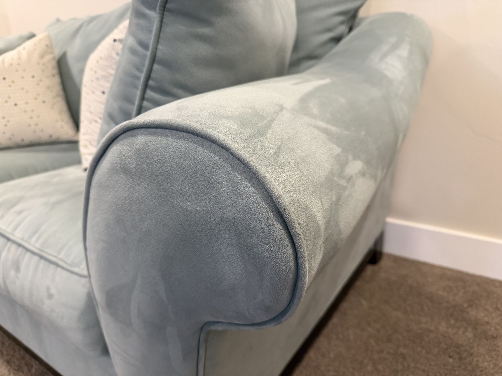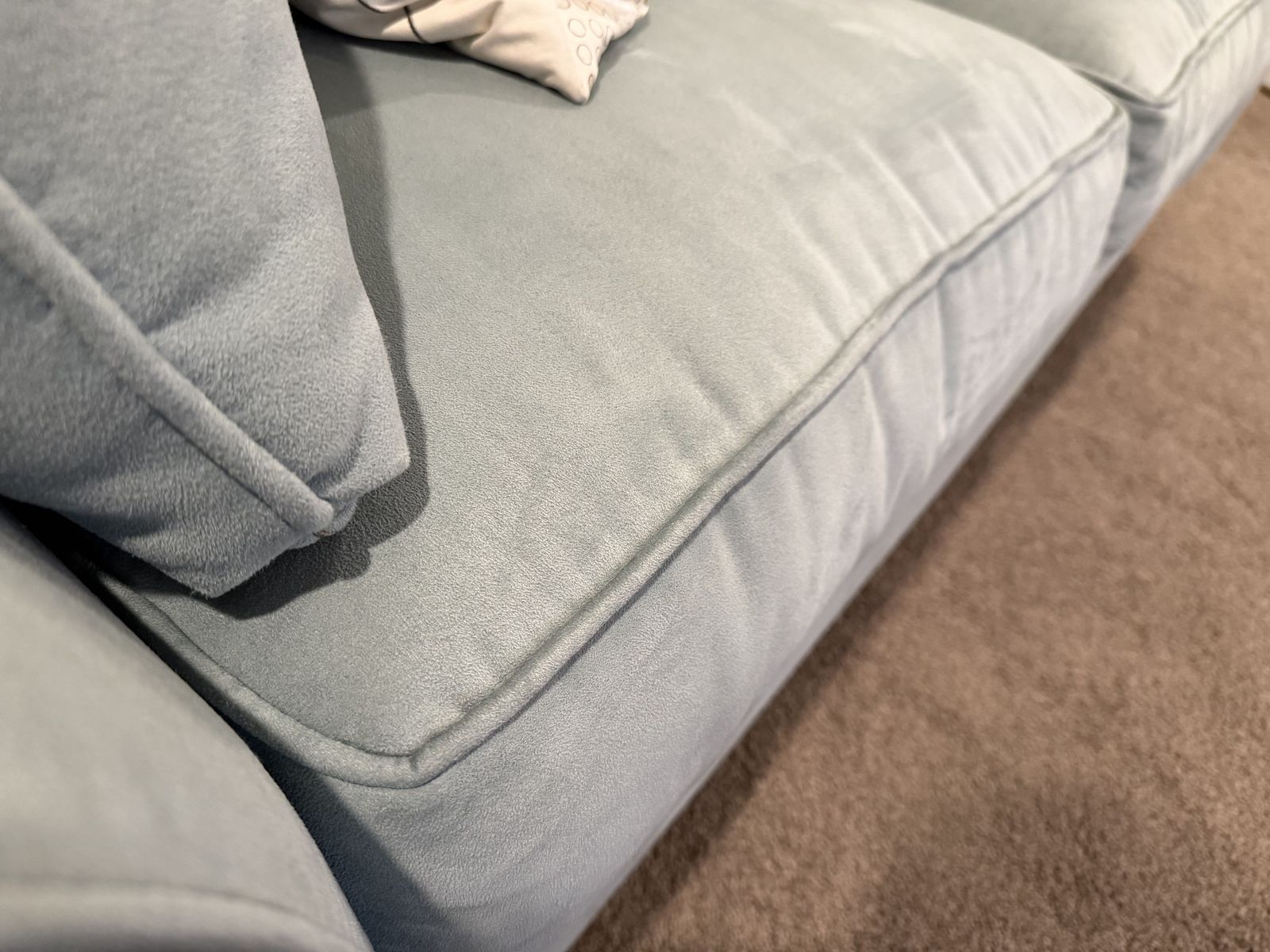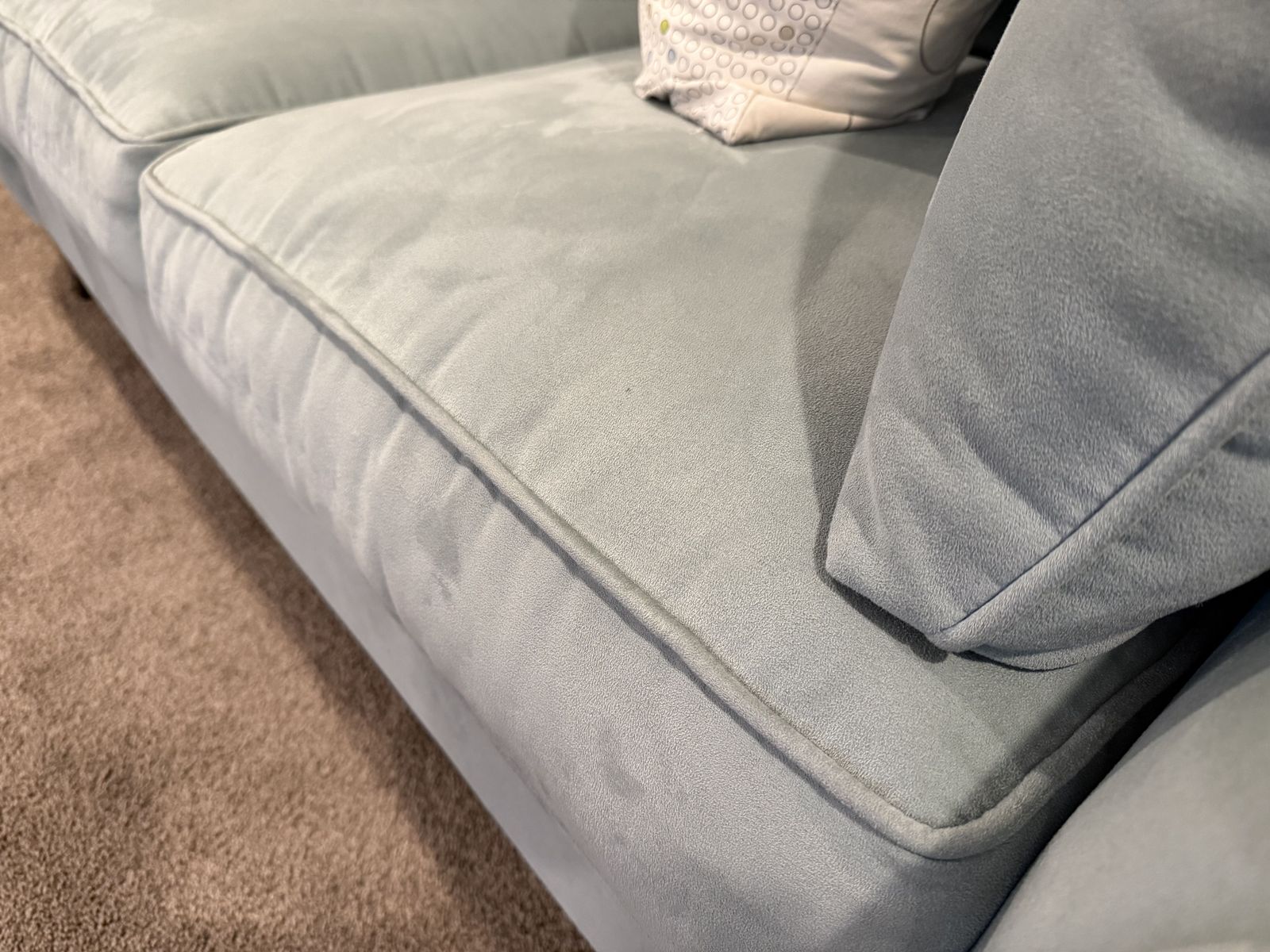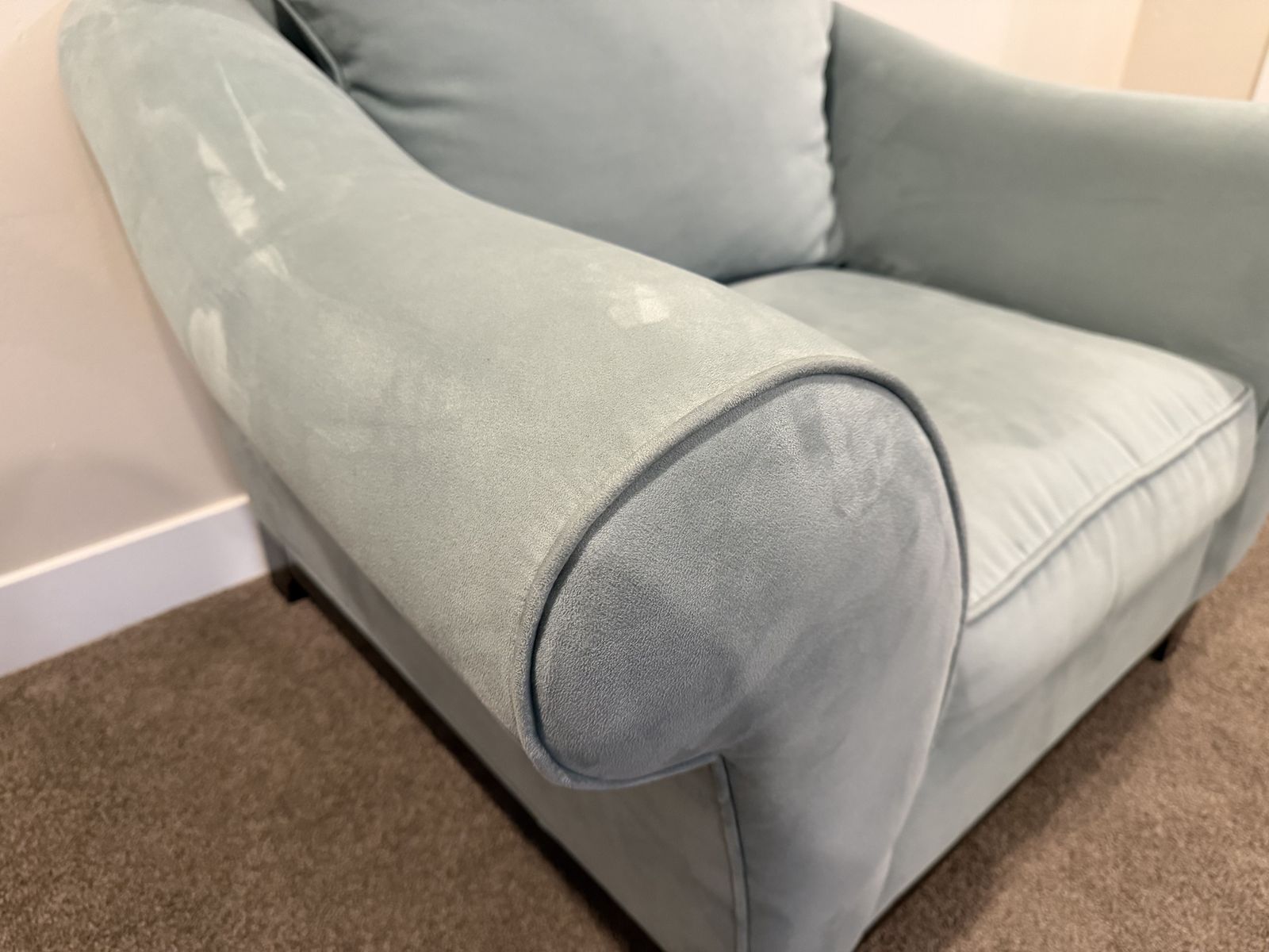 VenmoLoveseat, chair, and ottoman in a nice light blue soft fabric. Minimal wear, looks brand new. includes accent pillows. This is in a pet free and smoke free home, no weird or quesitonable stains etc. They are very comfortable. Detailed photos to show the condition. These were almost never used; we are using that room for a differnet purpose so it is time for these to go. Price is OBO.