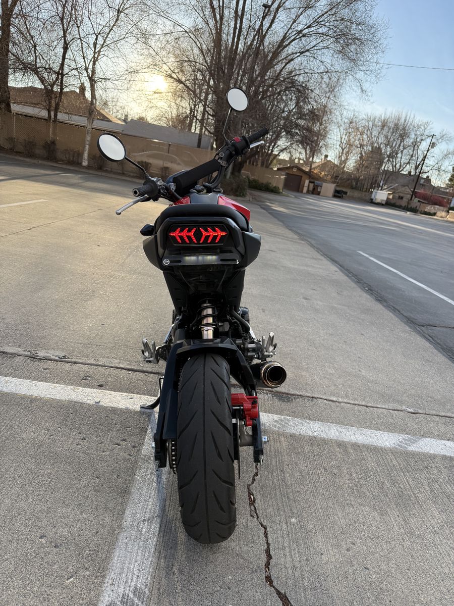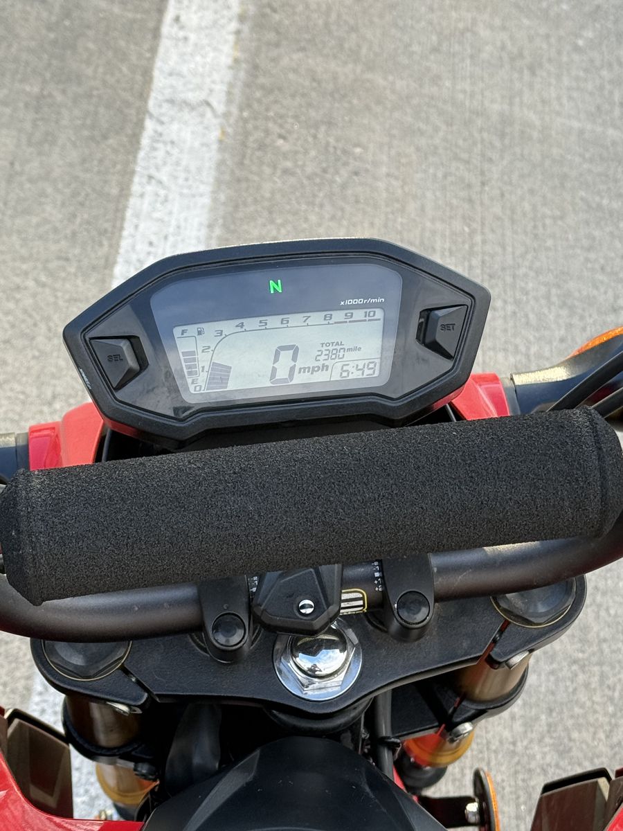I’ve only owned it for a little bit. Great starter bike for anyone looking to get a motorcycle! It’s got Pro-taper bars, and a Zoom exhaust which sounds great! Super clean bike and ready to ride! Zero issues and gets phenomenal gas mileage! I guess the fiancé wasn’t really a fan so it’s time to let it go before we get married!