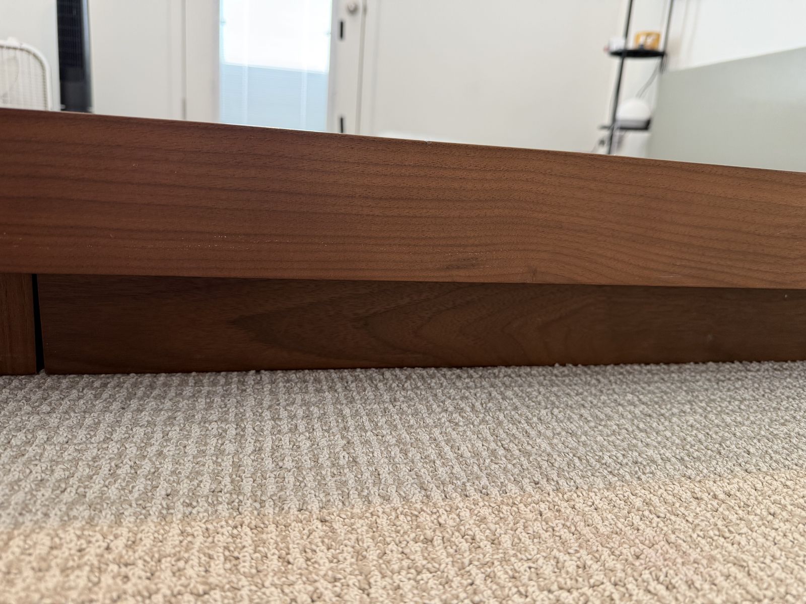 VenmoThis is a low profile platform bed that does not require a box spring. This is solid wood making it VERY HEAVY! Comes with two side tables that slide in without hardware required. Asking $350 OBO, we’ve had this a little over a year!