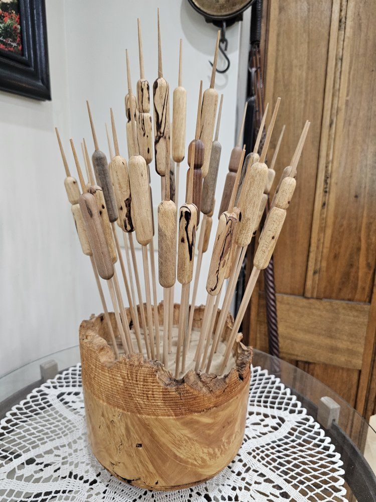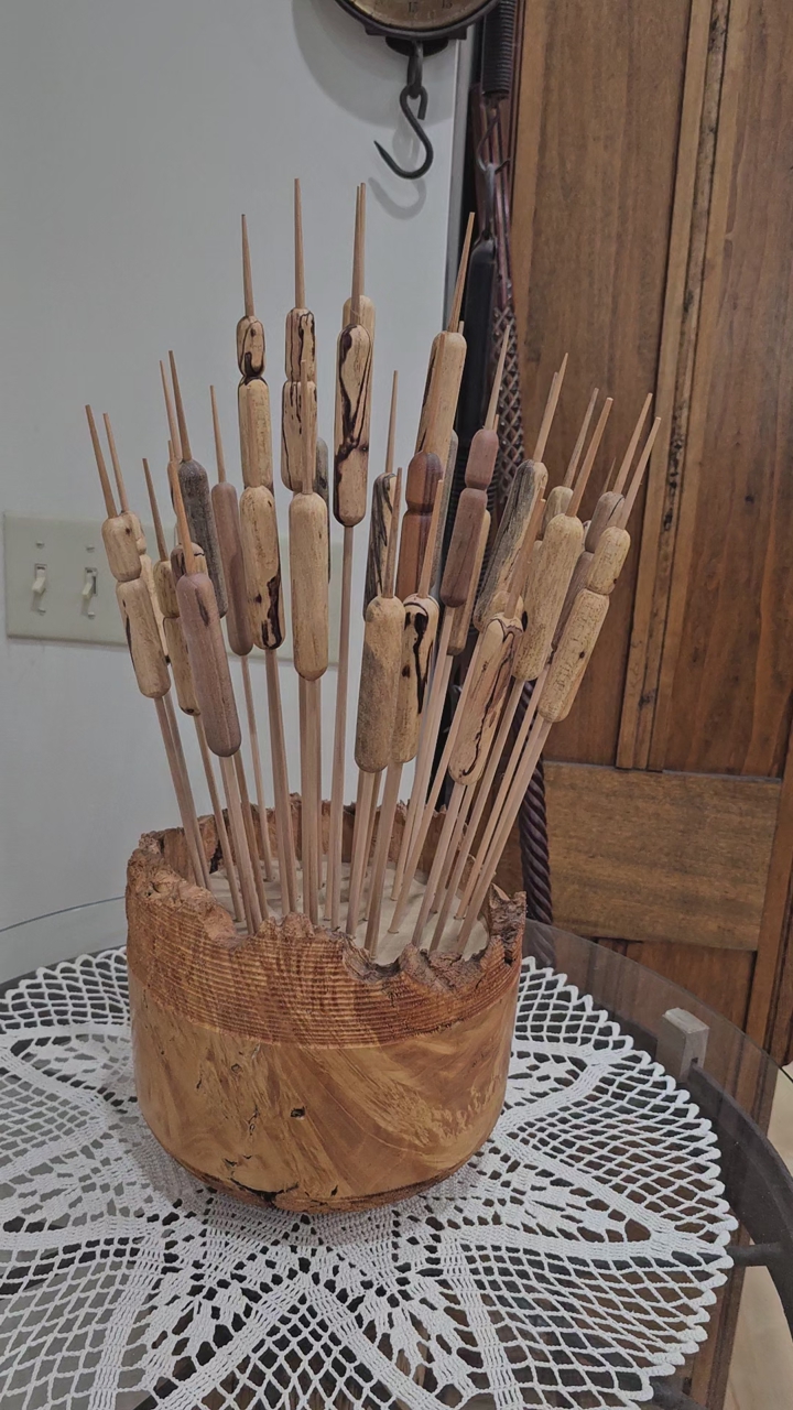 VenmoHandmade wood bowl filled with intricately made cattails. A beautiful piece of home decor. Reach out if you are interested in other handmade and wood turned home decor!!