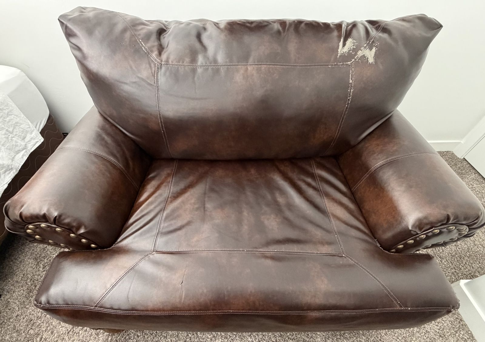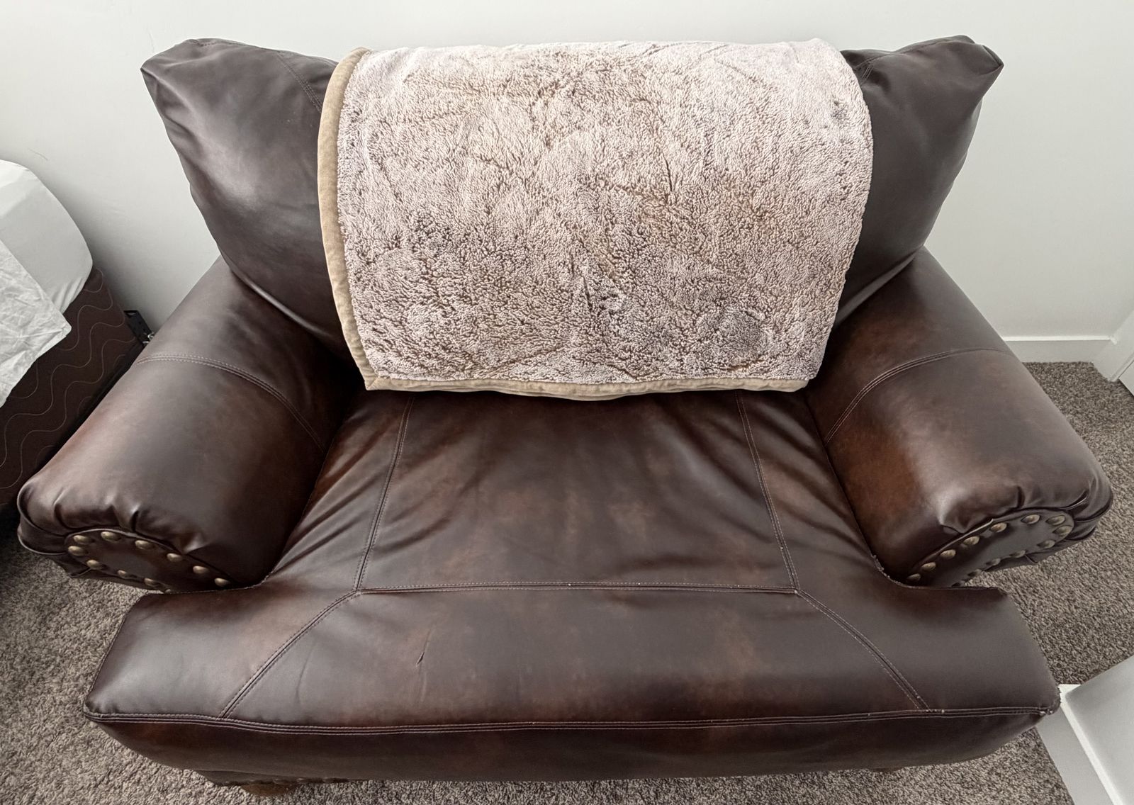 ApplePayI have a really nice oversized chair. I moved to a new apartment and the chair takes too much space in my room. It can fit one large man very nice It can fit a large or oversized person comfy. It can fit two kids very comfy. It’s been well taken care of. It’s very clean. Some of the exterior has come off but you can hide it with a blanket like I do. I bought it with the exterior already rubbed off and I’m not sure how that happened. $35 OBO. I paid $100 for it.