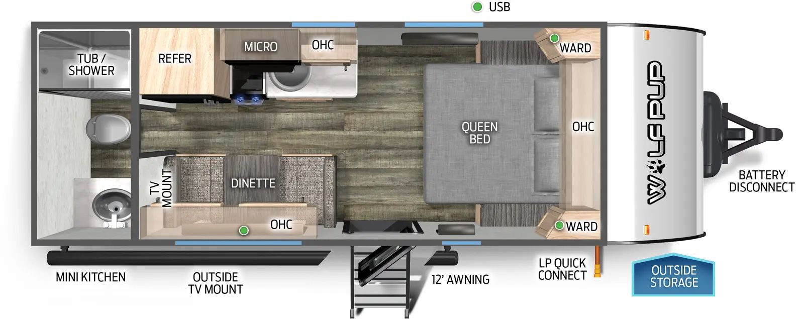 2024 wolf pup 16FQ travel trailer made for a couple (no bunks or additional beds)
