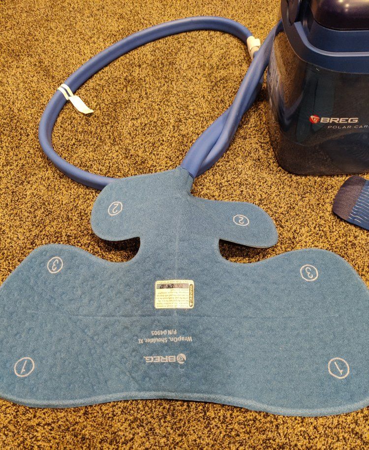 VenmoBreg Polar Care Cube Cold Therapy System for shoulders. Included are the straps which can hold the pad in place.