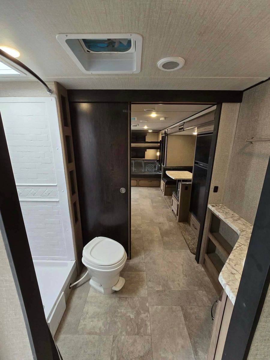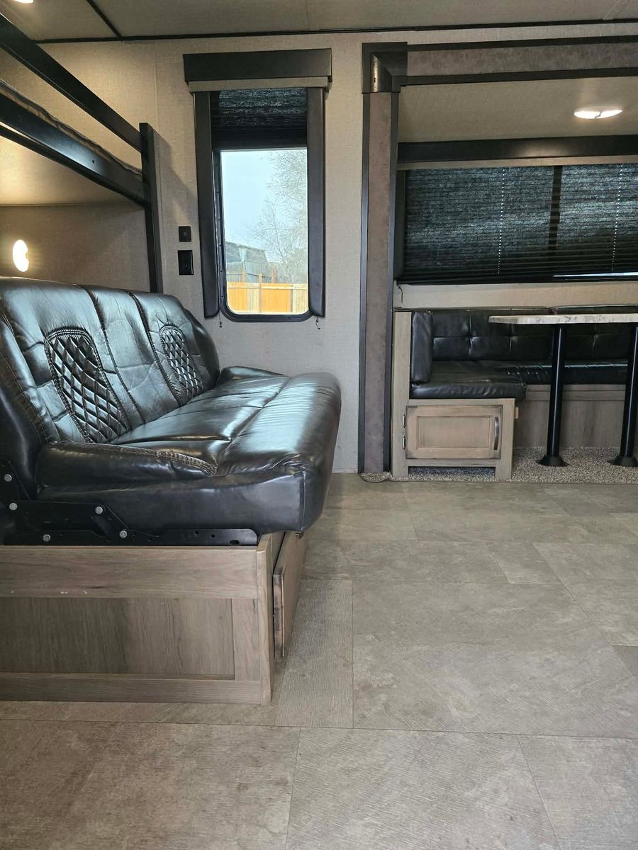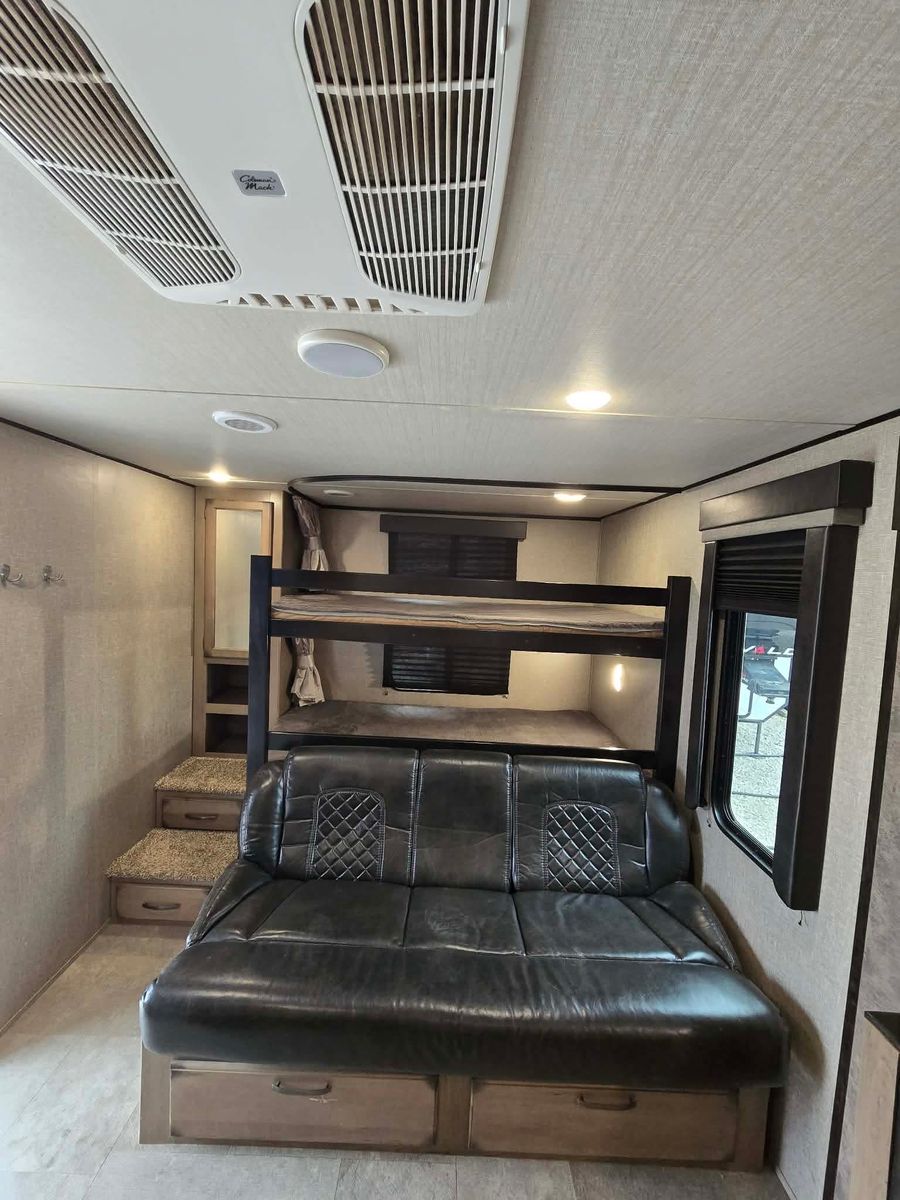 Priced to sell! Retails 22.5k buy it here at 10k off retail price! Branded title due to minor rear corner damage that has been fixed. Trailer is cleaned up and ready to go! Needs a mattress! Sleeps 10 comfortably! Has a spacious bathroom that separates the living areas which is what you want to have when your sleeping so many kids! All appliances are functioning! First come first serve! No holds without a deposit. Dlr8792