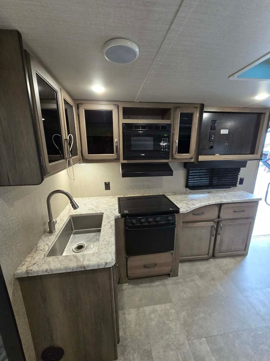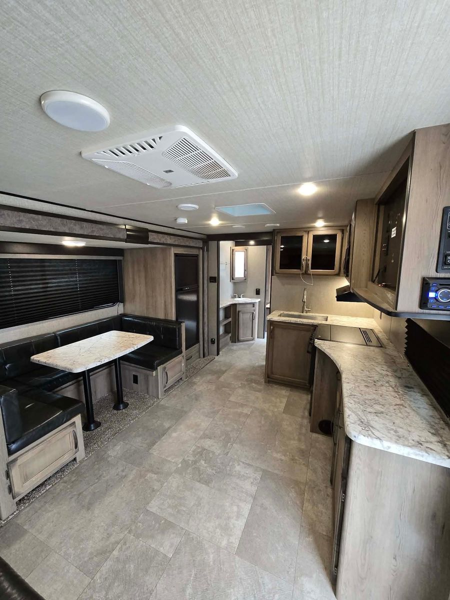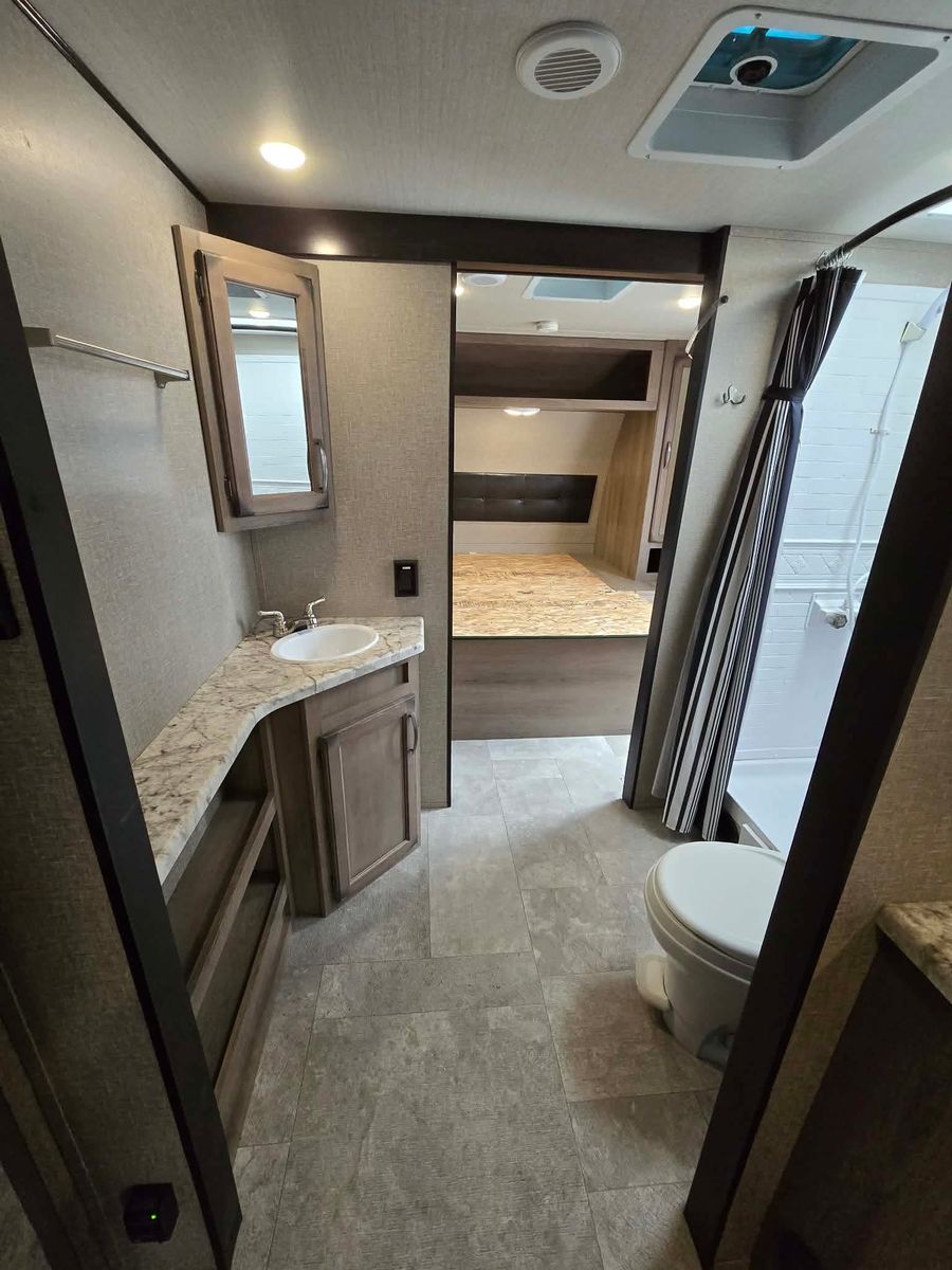 Priced to sell! Retails 22.5k buy it here at 10k off retail price! Branded title due to minor rear corner damage that has been fixed. Trailer is cleaned up and ready to go! Needs a mattress! Sleeps 10 comfortably! Has a spacious bathroom that separates the living areas which is what you want to have when your sleeping so many kids! All appliances are functioning! First come first serve! No holds without a deposit. Dlr8792