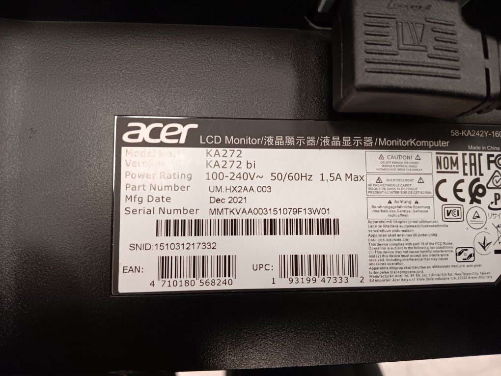 Acer KA272 Ebi 27" IPS LED (1920 x 1080p Full HD Resolution Computer Monitor - Black. Excellent Conditions! inf 702 3558824