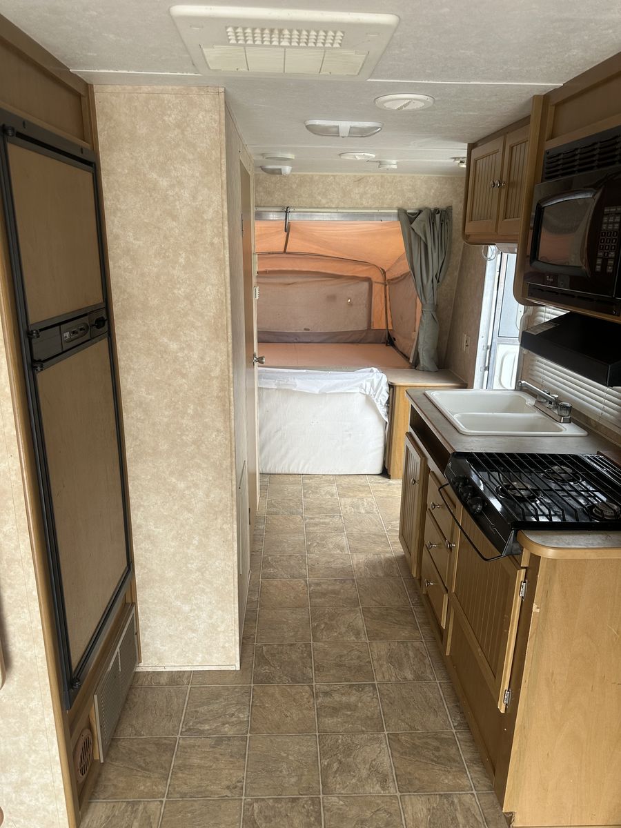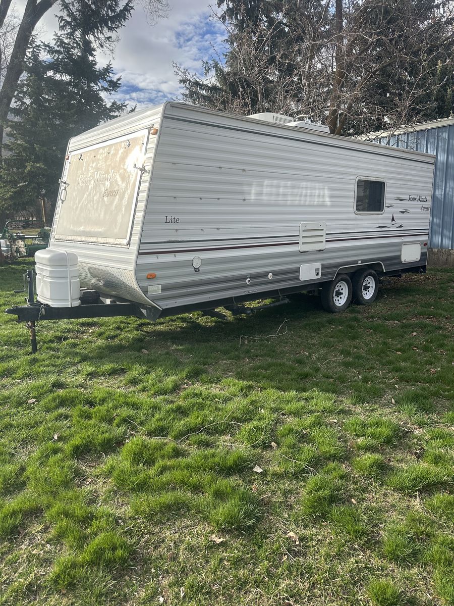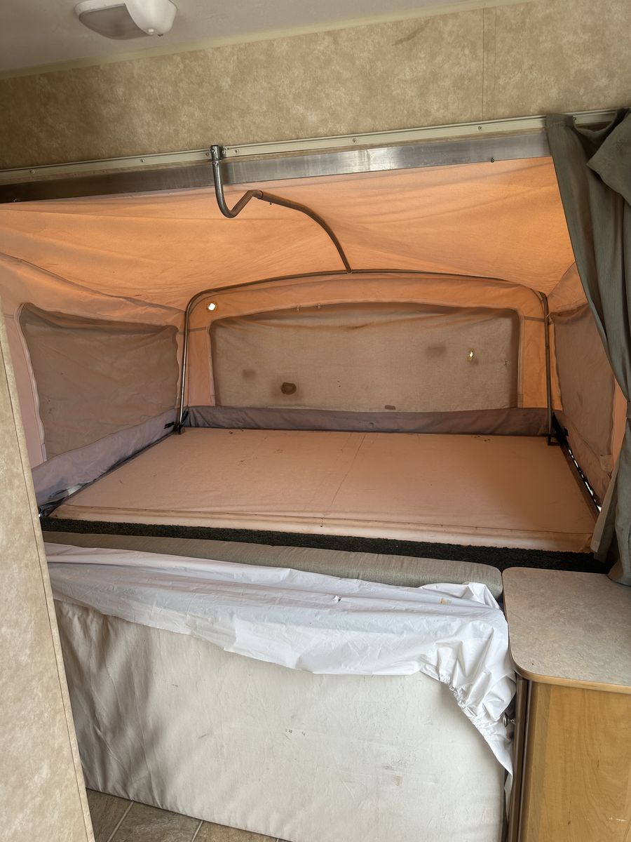 We are selling our toyhauler. This is half ton towable and can fit some sxs. Everything works including furnace, A/C, stove, toilet & shower. The trailer is covered in the winter and has no leaks. The trailer tows great and was able to hold our 4 four wheelers (2 large, 2 kids sized). It has a queen bed in the canvas fold out that has a few patches. Fold out bench/bed & dining seats that make another bed. Opening is 88” wide at gate 68 1/2” tall 131” deep to the cabinets 69” width at wheel wells Weight info is in pics. Thanks