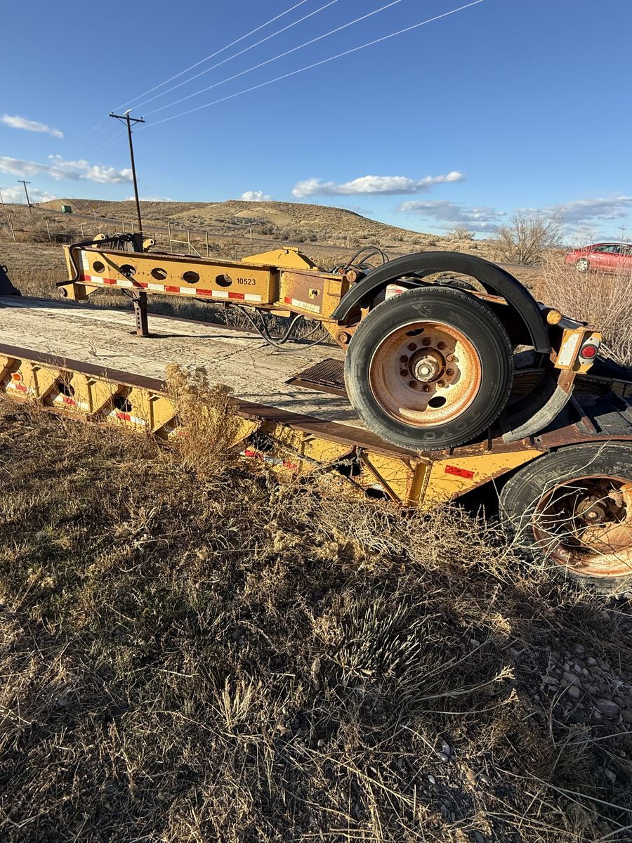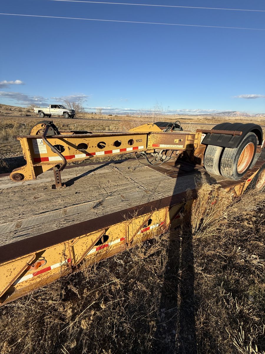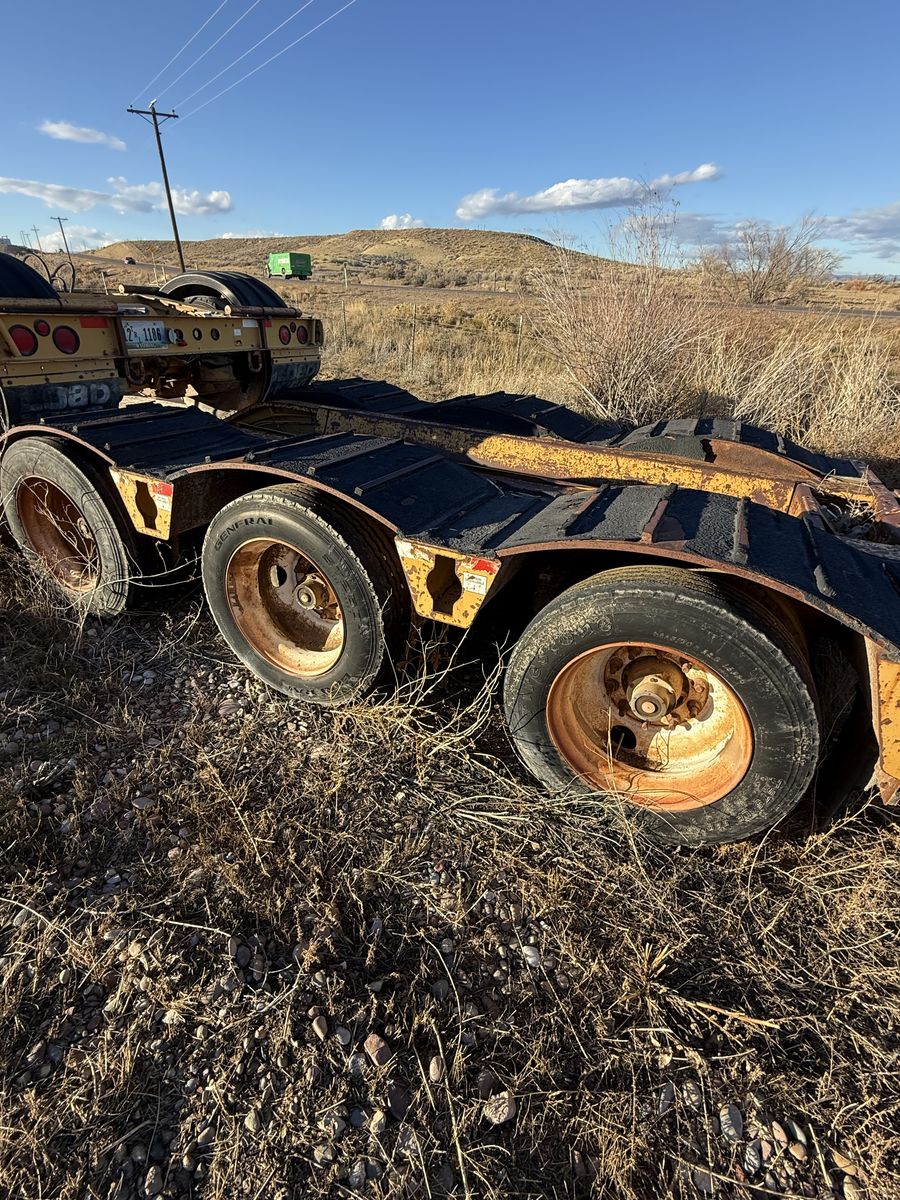 Heavy Equipment Trailer. The stinger axle on trailer is included. Tires all holding air pressure. Gladhands are in good condition. Does not have Pony motor but does have the hookups for one. Brakes have plenty of life left in them. Has been sitting for a while so it needs some TLC. (Leaking wheel hubs, old tires, etc.)