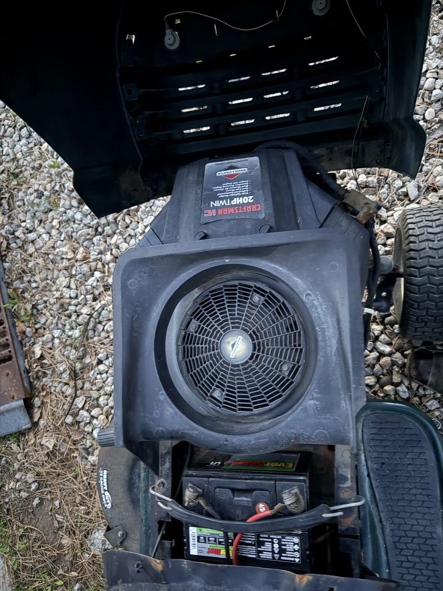 None running craftsman riding lawn mower. With bagger. 42” deck 20 hp. Don’t know what’s wrong with it. Tires hold air. Engine spins over. Price is 300 pick up in plain city.