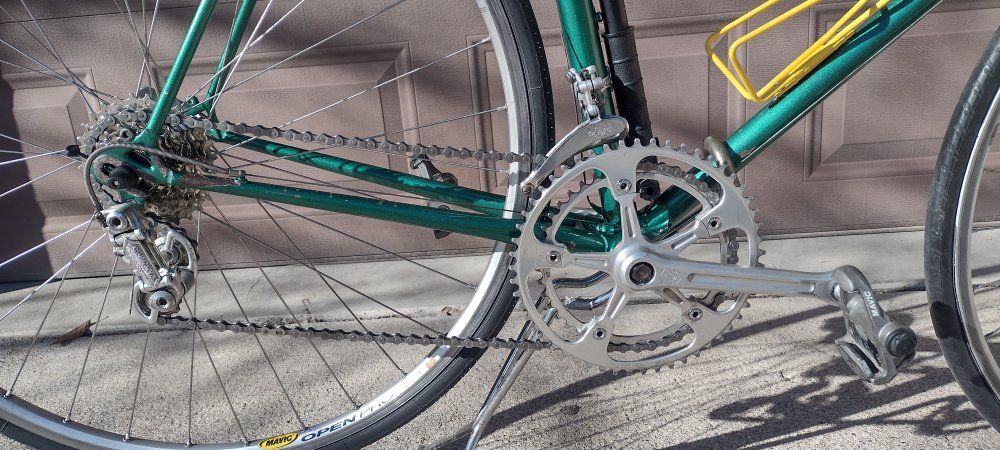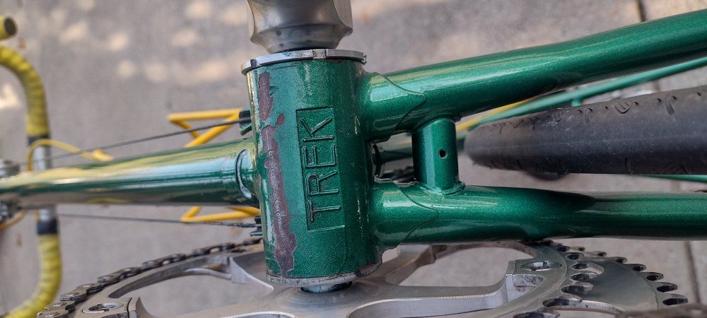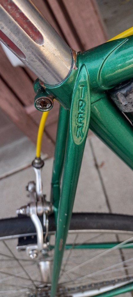 Early 1980's 60cm TREK 750 road bike. completely overhauled, very good mechanical condition. Reynolds 531 Double Butted frame. Campagnolo Nuovo Record components, Cinelli bars and stem. Very comfortable riding bike.