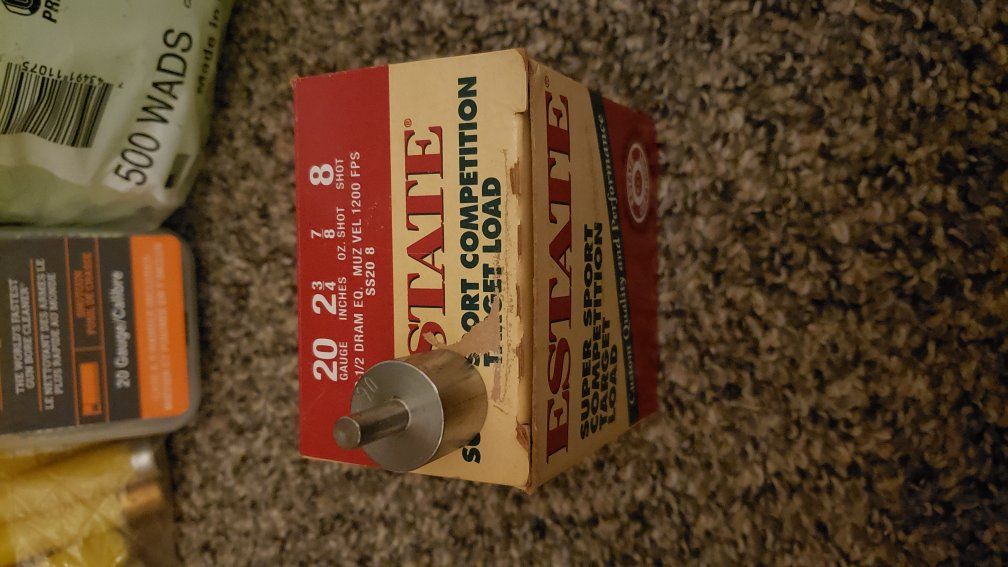 Venmo20 gauge hulls, CB lead wads, few BP 2090 steel shot wads, box of estate factory loads, brandnew never used 20 gauge bore snake. and a ballistic products 20 gauge roll crimping tool. asking $40 for all of it.