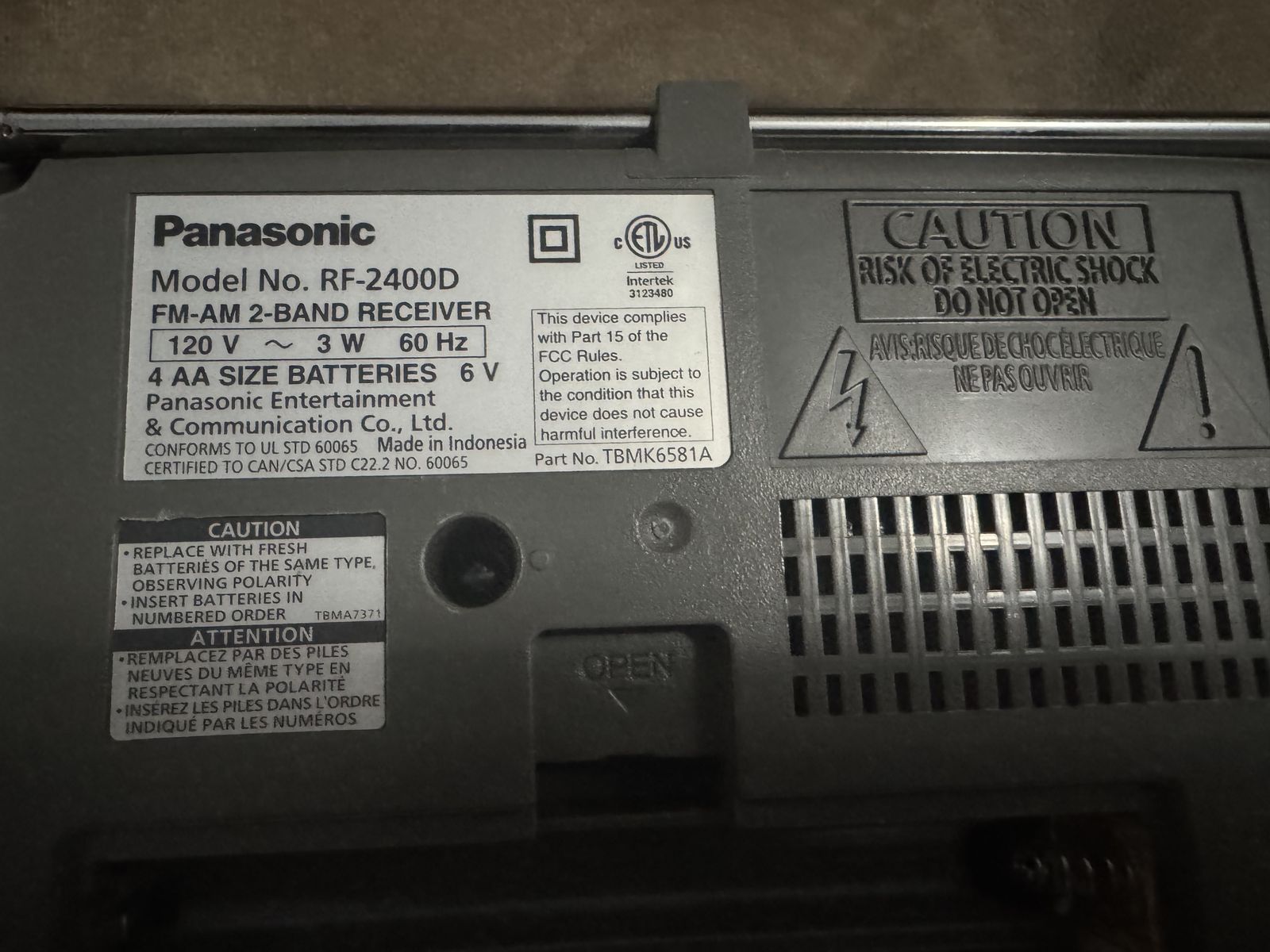 VenmoPanasonic AM/FM Radio (Electric and Battery-Powered), RF-2400D, Silver/Gray in great condicion, works fine $40 Accept cash or venmo