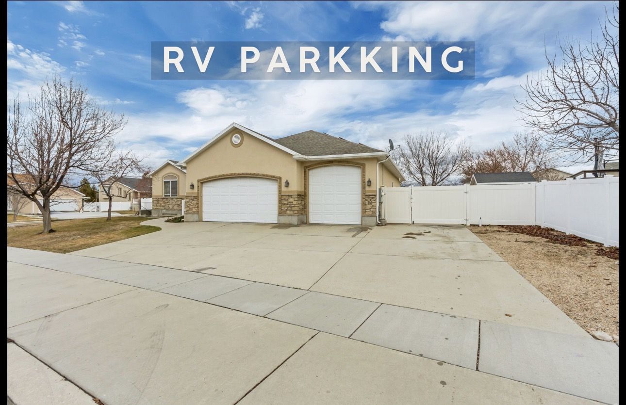 Includes access to a massive 5-car tandem garage with 10’ ceilings, RV-sized garage door, RV parking pad, and large driveway—perfect for multiple vehicles, trailers, or outdoor toys.