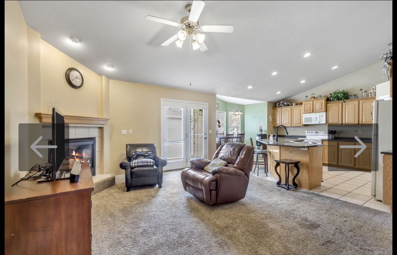 Spacious 4 bedroom, 2 bathroom main-level home for rent, plus a private office downstairs. The home features vaulted ceilings, open living space, and plenty of natural light.