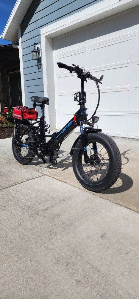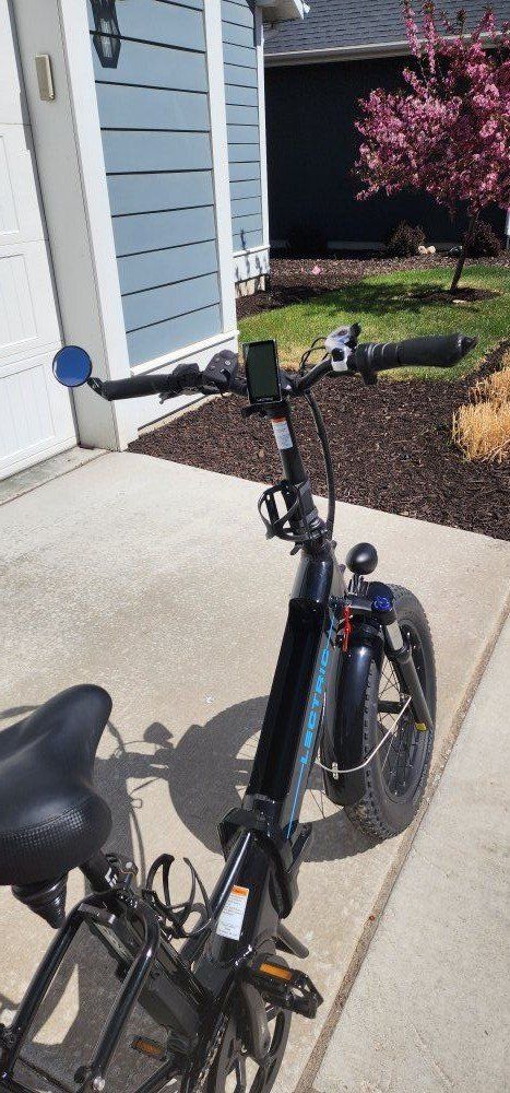 This e bike is awesome.It has 3 1/2" fat tires for extra comfort and off- road Capabilities,gel seat post shock, gel seat for a great ride. The really great feature is that it has 2 batteries, so you can go a real long distance if you want to. I can't ride it anymore because I'm handicapped and am 75 years old. What's it looks and rides like new, because I didn't ride it that much. The new price was about 2,600 and I will take 1,500. This is a steal, hurry before it's gone. It's great riding weather right now, so take it for a ride!