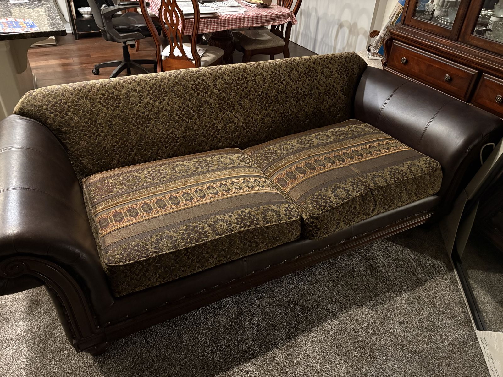 older furniture. Hardwood and leather very good condition. He will need to bringbe me strong people to move it.