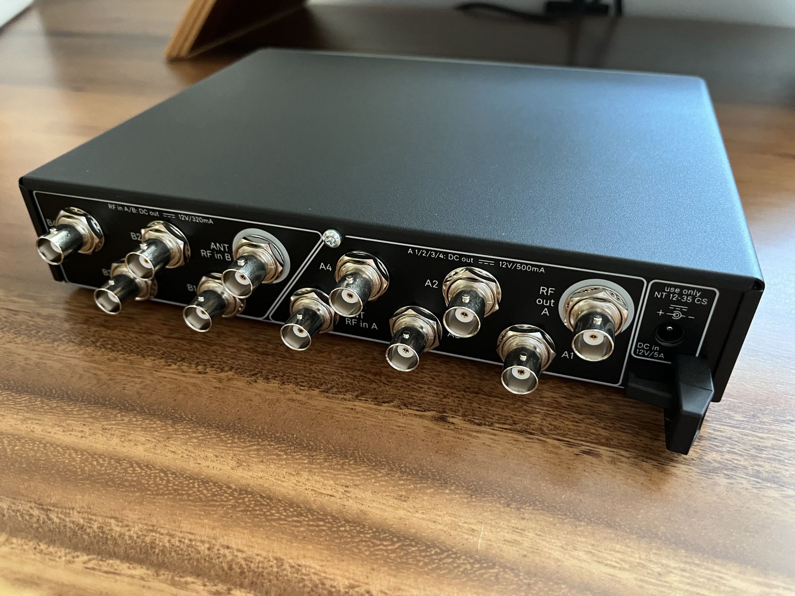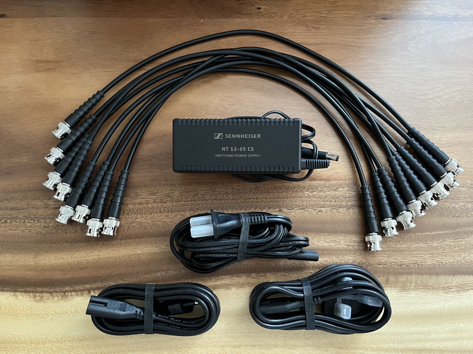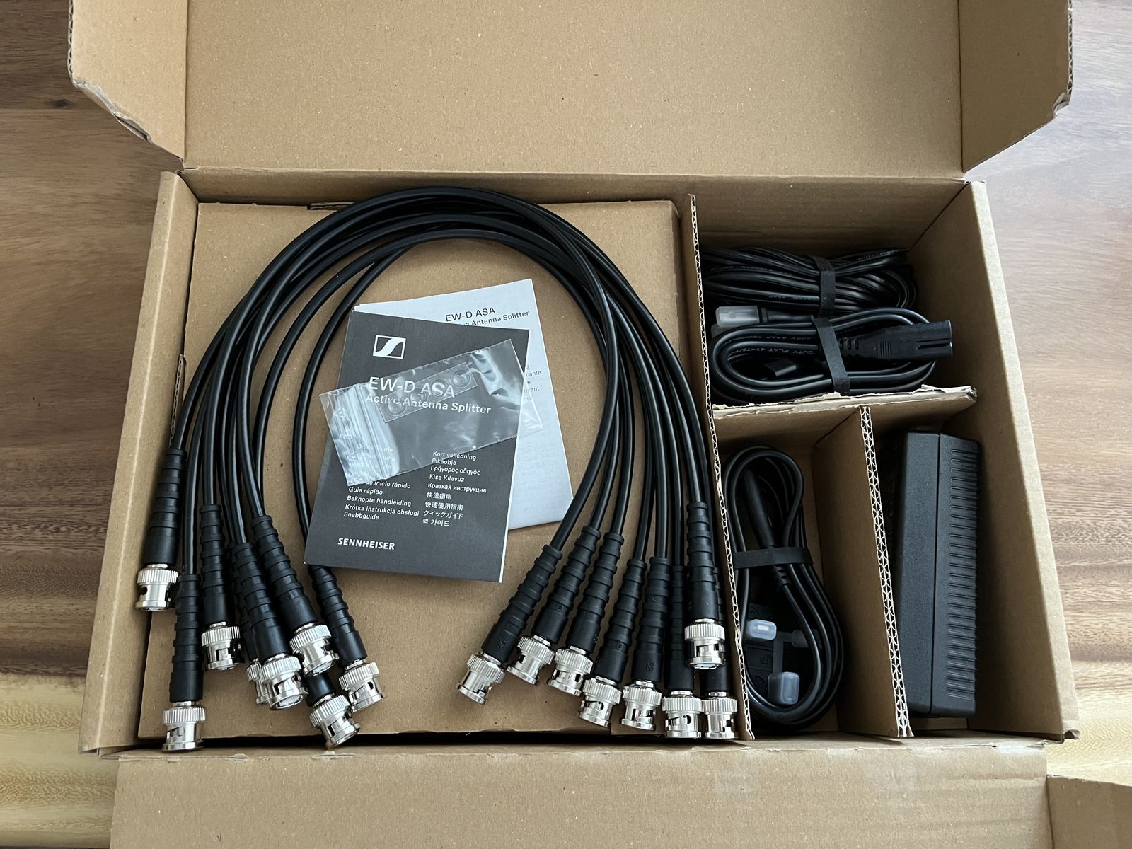 Can connect up to 4 Sennheiser EW-D/EW-DX/G3/G4 systems to one pair of antennas. Includes splitter, 8 BNC interconnect cables, and power adapter.