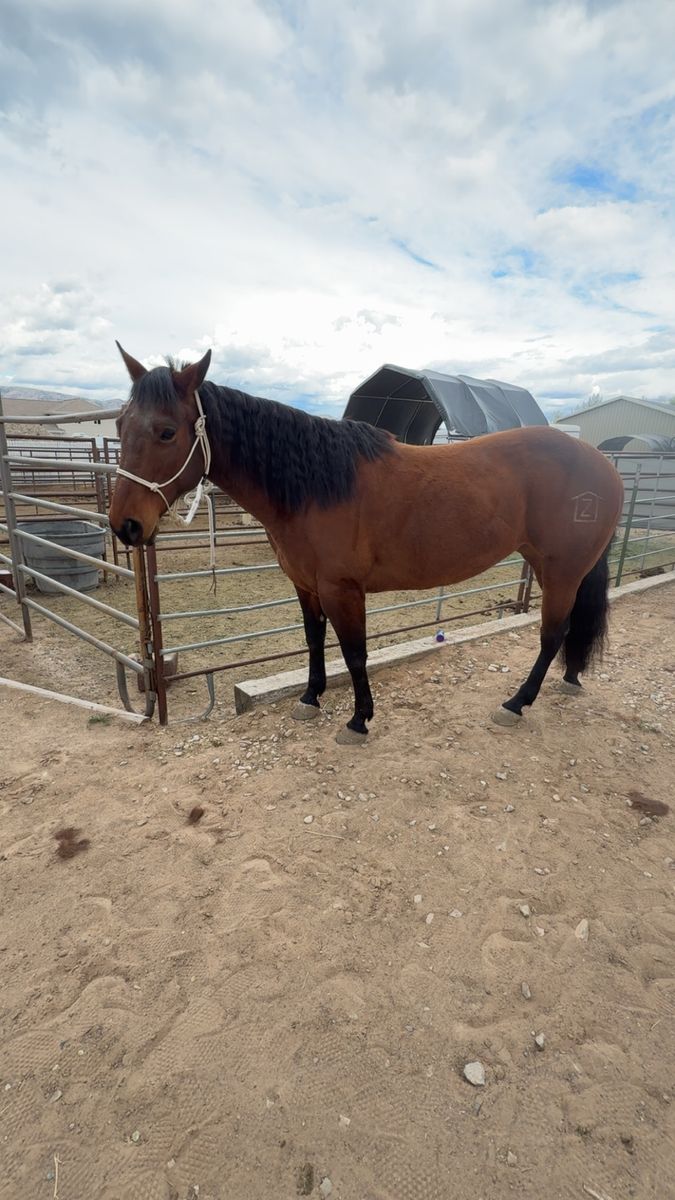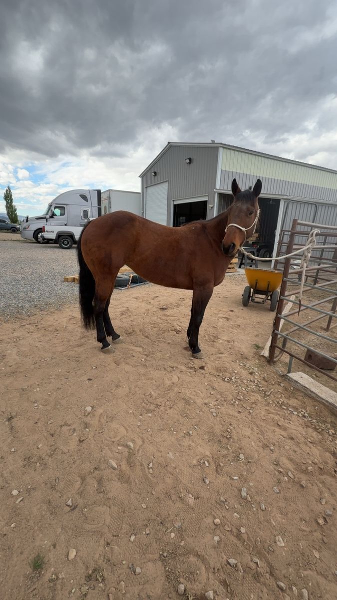 Indy is a 10 year old, grade, 14.1hh mare. She has been hunted off of, carried flags through parades, had a rope swing off her, barrels, poles, trail rides, rides around town and more. Indy has ran barrel at jackpots a few times and shows potential! Indy has a big motor and is more go then woah. She is on the smaller side but is A-LOT of horse and is on the hotter side. She hauls great, has stayed over night in a stall, stands tied, good to bath, and good for the farrier. She is looking for a new person to give her a job as I’m going to college and don’t want her to sit while I’m away.
