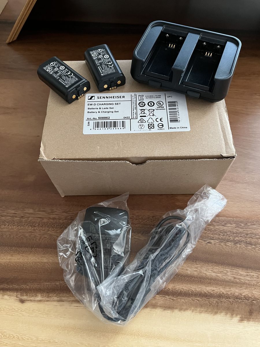 USB-C charger and two batteries for the Sennhesier EW-D/EW-DX wireless system. Only used a few times.