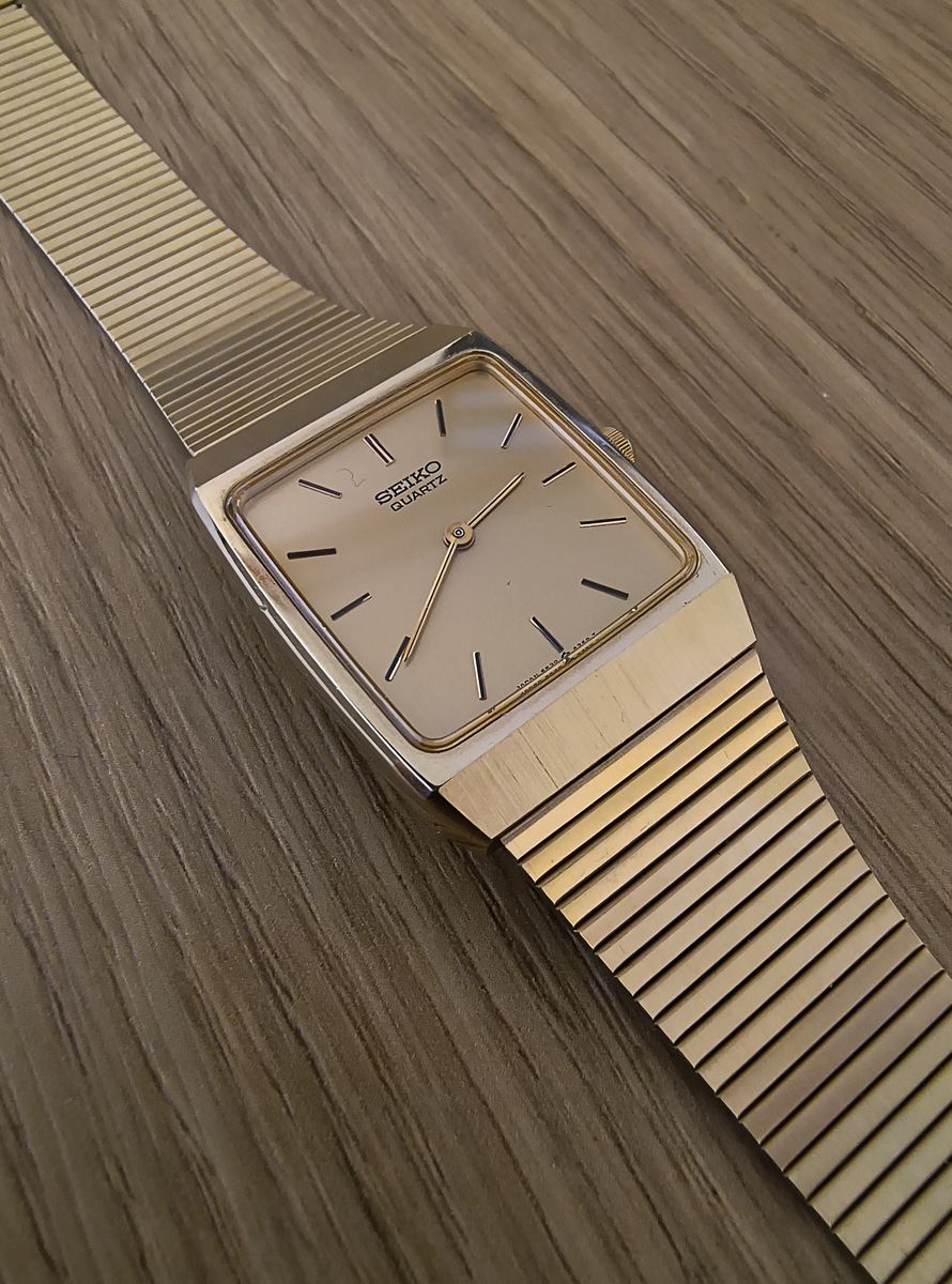 ZelleIntegrated bracelet style that was popular in the 1970s and 1980s. Gold tone over stainless steel. Near perfect condition. New battery installed February 2026. Keeps time perfectly.