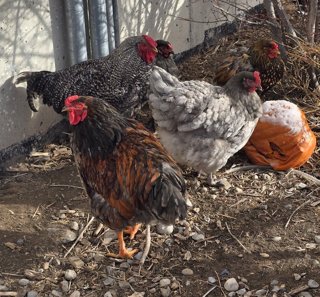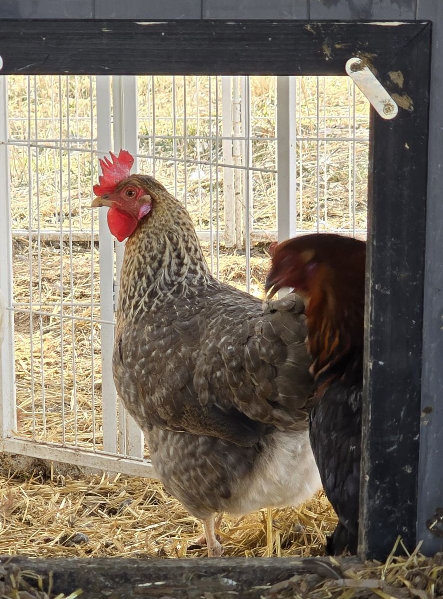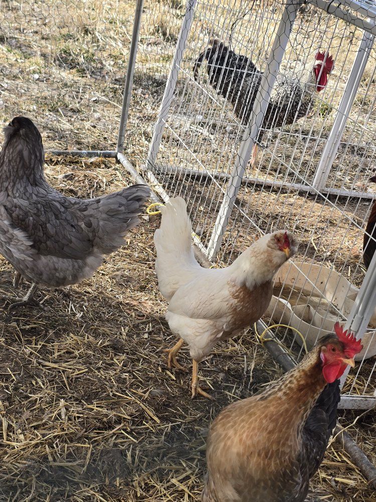 we have 2 roosters and 6 laying hens looking new homes gotta downsizing. some barnyard mix 1 buff Orpington etc. roosters 1 a barred rock color other is black with some red. the roos be a year around October 2026 hens range from 1-3 years old still laying just got alot lol idk which ones younger or older besides the silkie mix she younger pick up weston idaho 30 each hen 10 each rooster they make good meat or protect hens or bug eaters