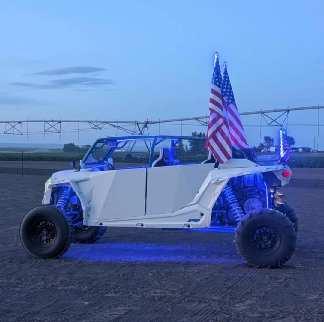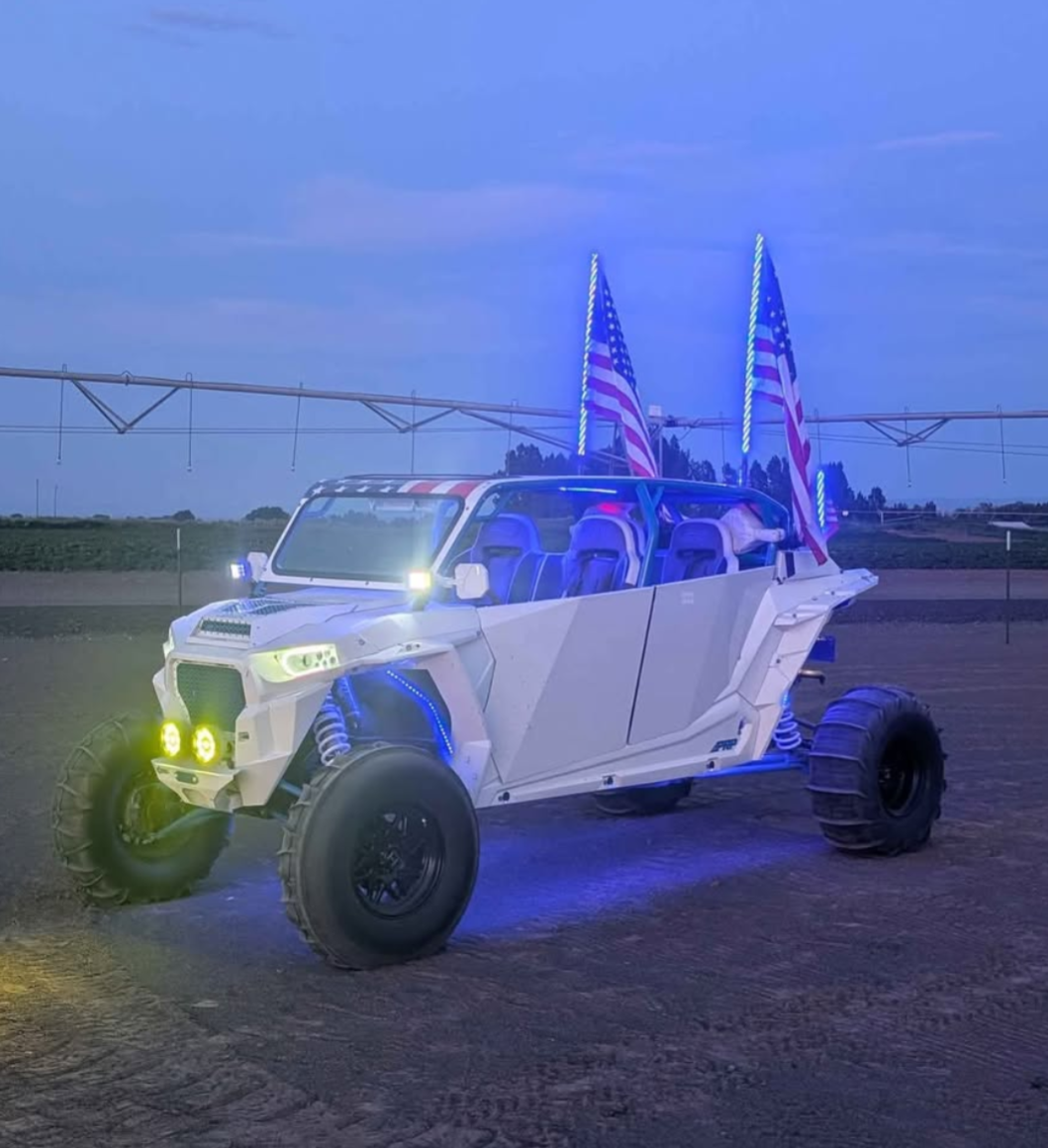 2016 rzr turbo fully built motor done by K&T Performance with receipts trans done at same time with reduction kit put in it with sandcraft bearings, along with Carrier bearing and front diff are sandcraft. New clutching kit and both primary and secondary clutch done with motor. 700 ish miles on motor and trans. Motor armor doors, pro seats and door bags. Rsk hood, grills, and cage. Z bros arms front and rear are +3 for longer wheel base, shocks and springs revolved and secondary spring replaced by r1. Two trips on suspension. Oil changed and filter done every other ride with diff fluid done every 500 miles. Axles replaced last year all 4 of them. Custom exhaust with valve just needs to be hooked up. Custom stereo needs amp to be finished. Everything is paint matched and powder coated to match everything. American flag on roof wrapped. Belt fan, sandworks airi intake tubes for more air. Lit by mb whips for all lights