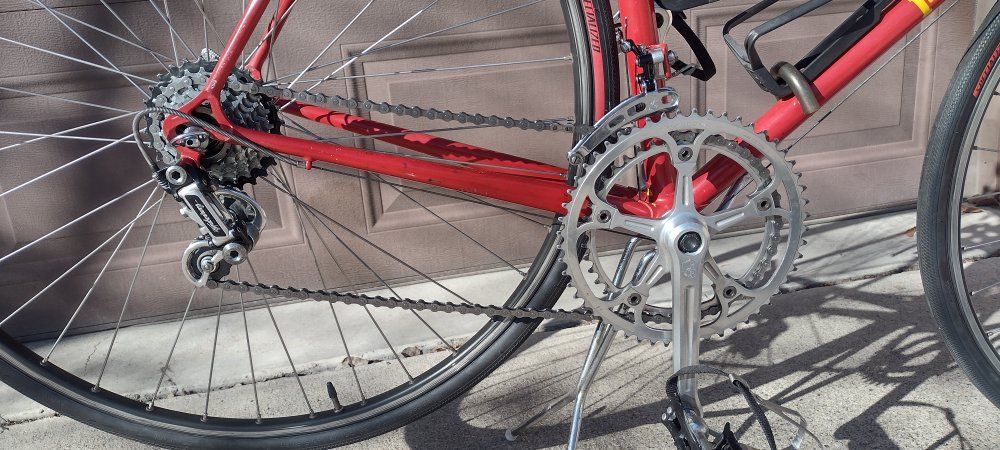 Early '80's 57cm Pinarello Team Issue Road Bike was ridden in the 1982 Women's Coors International Bicycle Classic by a member of the Panasonic/Denver Spoke Cycling Team. Columbus Double Butted tubing Frameset. Campagnolo Super/Nuovo Record Groupo, Cinelli bars and Specialized comfort stem. This bike has been completely overhauled and is in mechanically, very good condition. A comfortable ride