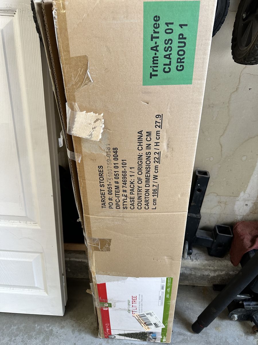 VenmoPre-lit, 6 - foot Christmas tree in box still. Used, but in good condition. We got a newer one this last year so we had to make room by getting rid of this.