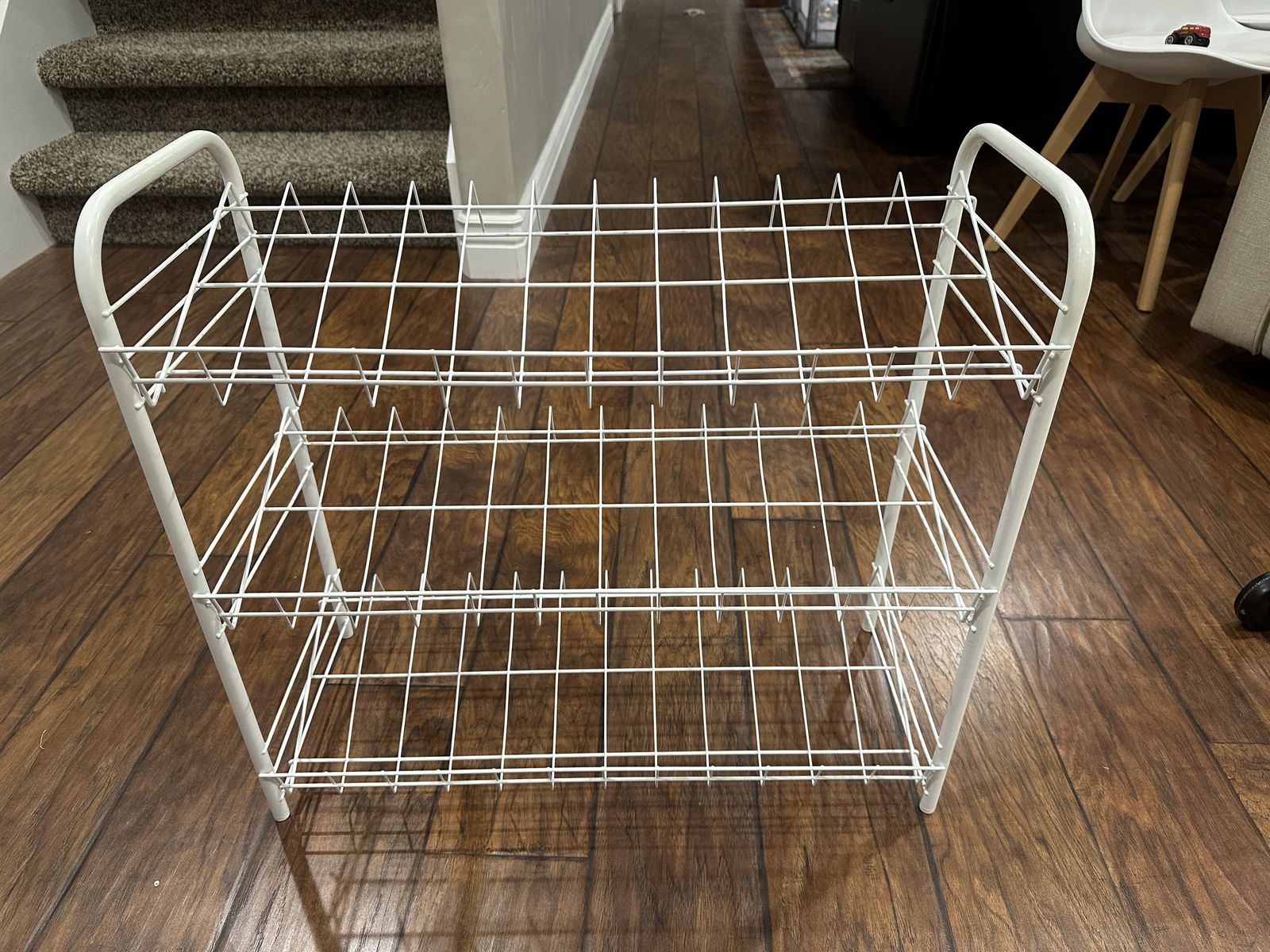 Zelle3-tier shoe rack in great condition. Holds multiple pairs and works perfect for closets, entryways, or garage storage.