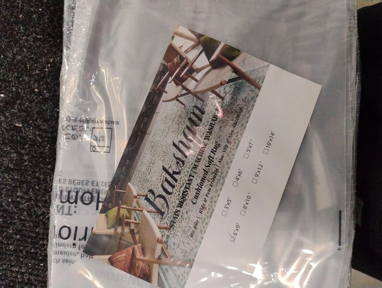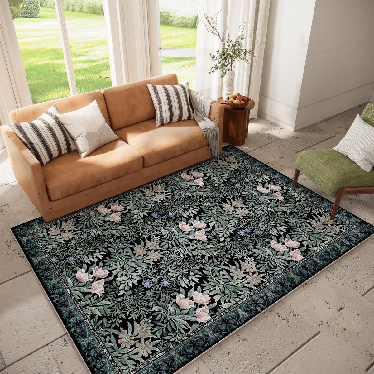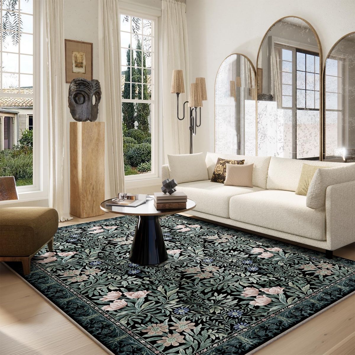 PayPalBeautiful 6 ft x 9 ft floral area rug. Perfect for a living room, bedroom, or office. The design has a dark background with elegant floral patterns that make the room look stylish and modern.\