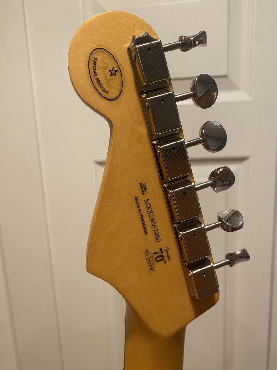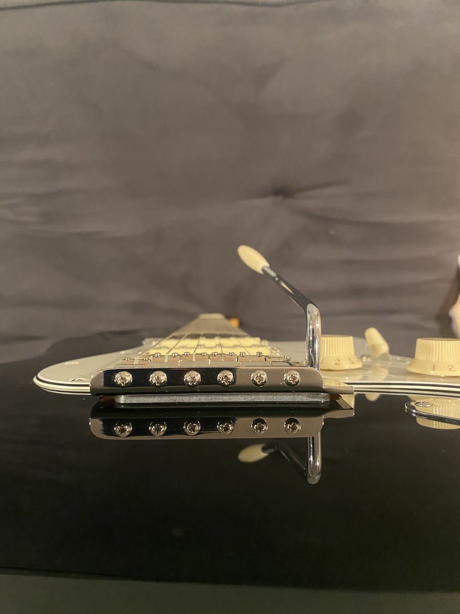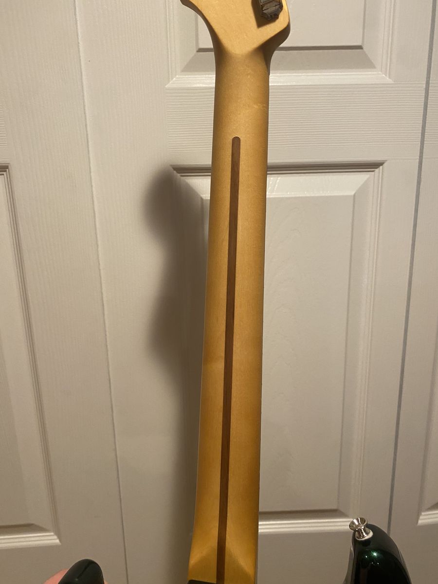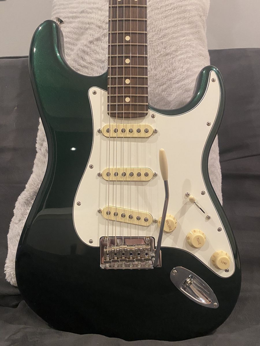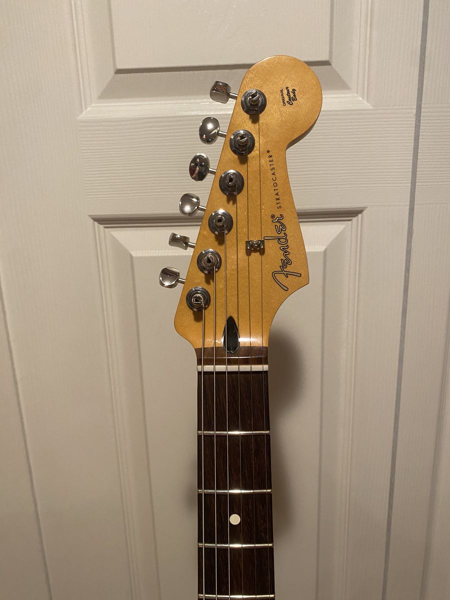 For your consideration is an awesome playing Strat with a rosewood fretboard. I’ve had this professionally set up and it plays like a dream. The color is even better in person. The neck has no twists and a fully functional truss rod. The satin finish, rolled finger board edges, and medium C profile feels amazing in the hand. I’m saving up for an American Professional II Stratocaster, so this one is up for grabs. Let me know if you have any questions. Cash and local pickup, please. Thanks for looking.