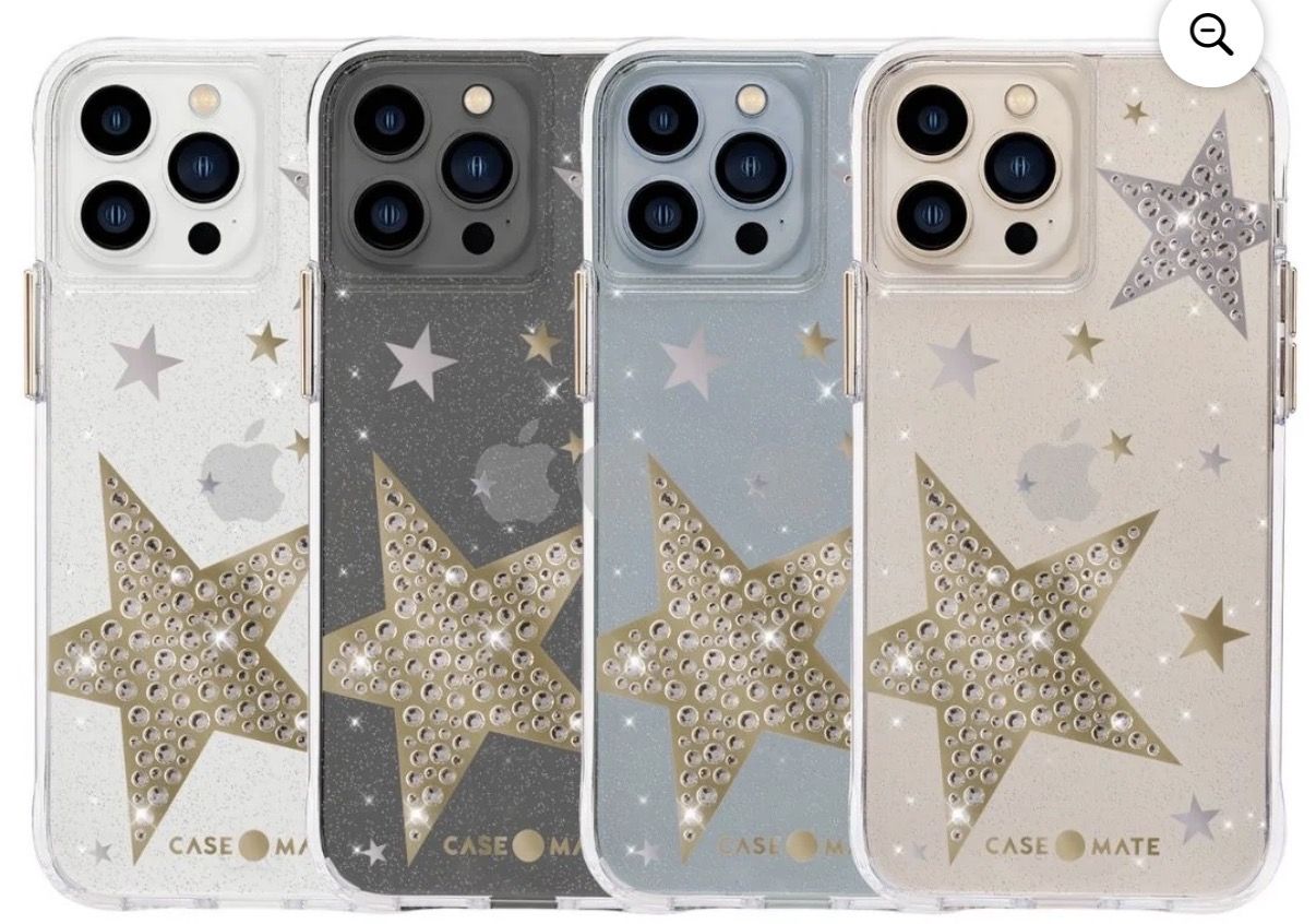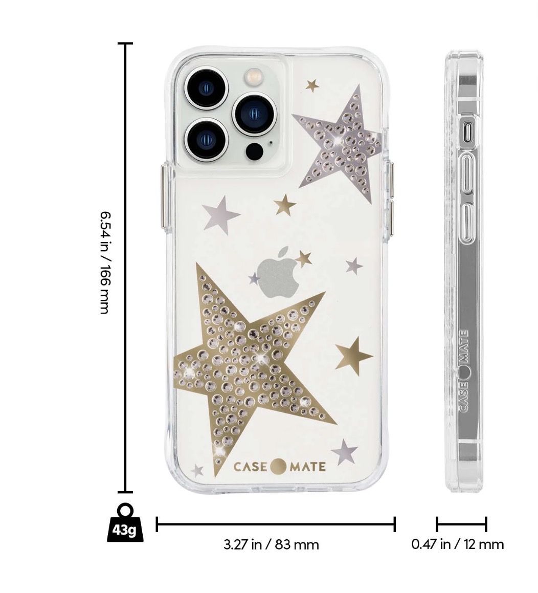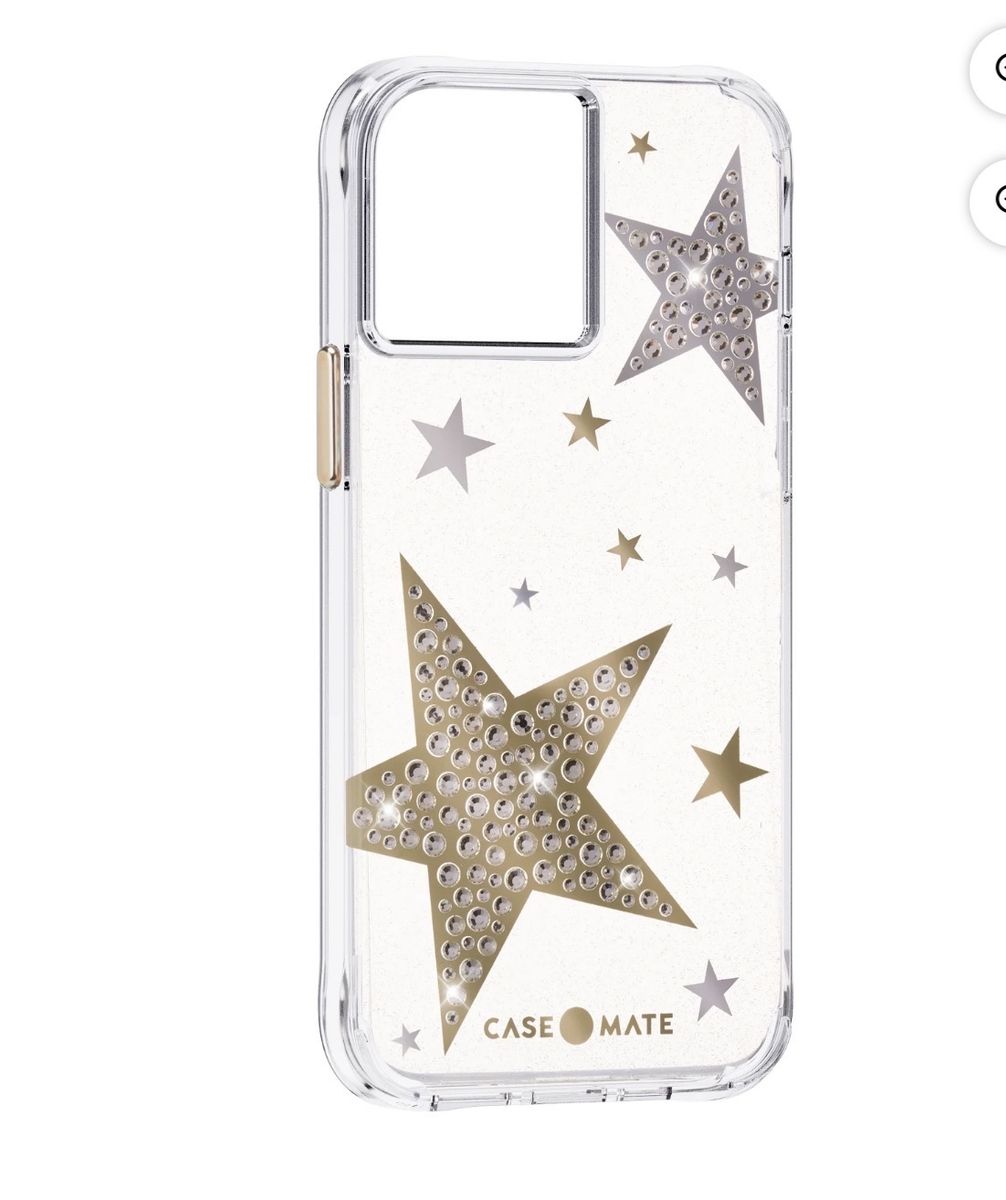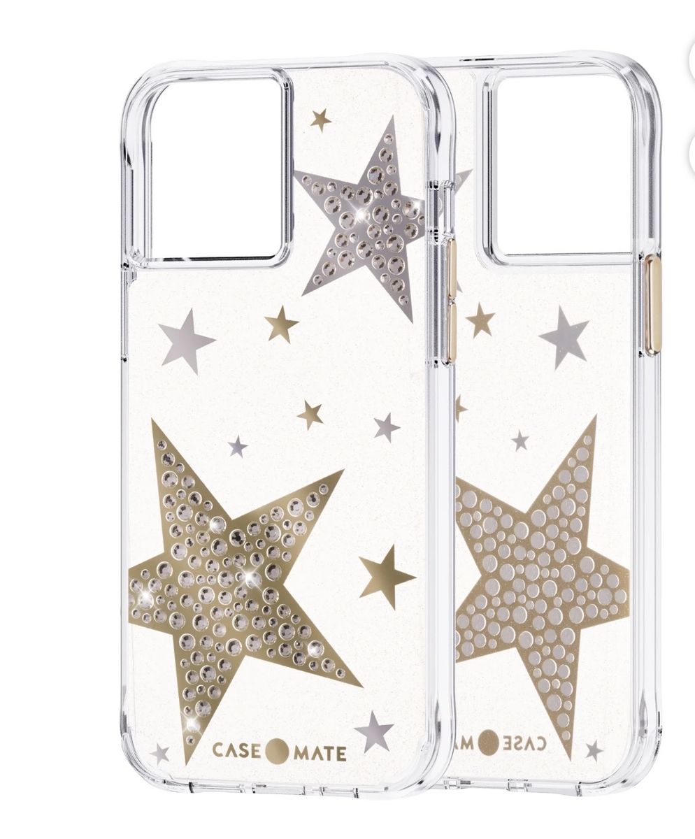 ZelleStylish Case-Mate clear iPhone case with gold stars and rhinestone design. Adds sparkle while protecting your phone.