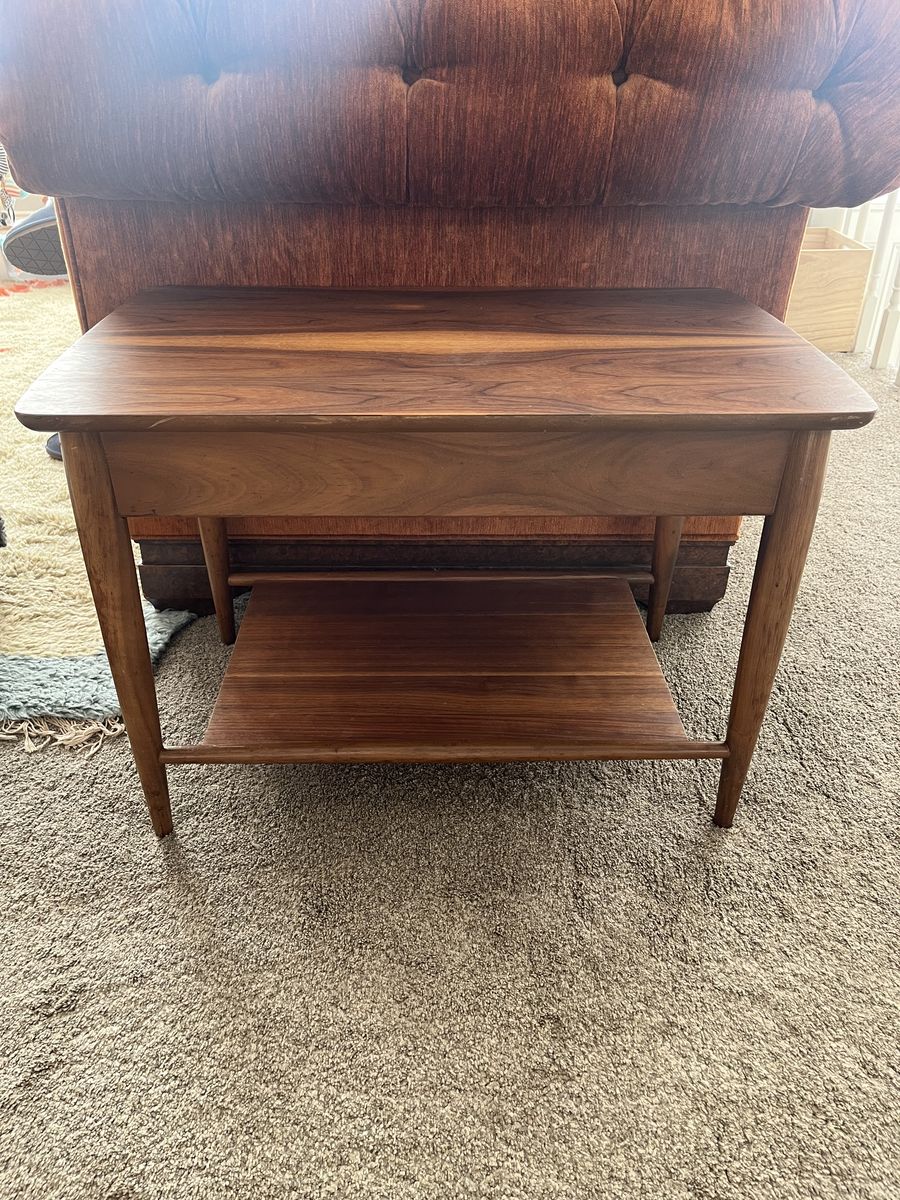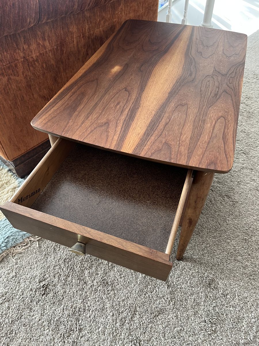 VenmoThis is a beautiful circa 1960’s Mersman Walnut Vaneer side table! It’s in great shape with very little damage for its age.