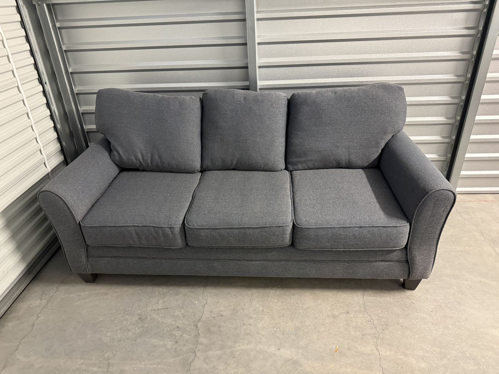ZelleColor is blue with interspersed white flakes to give a nice, light texture. Used but in good condition. Includes two throw pillows, not pictured.