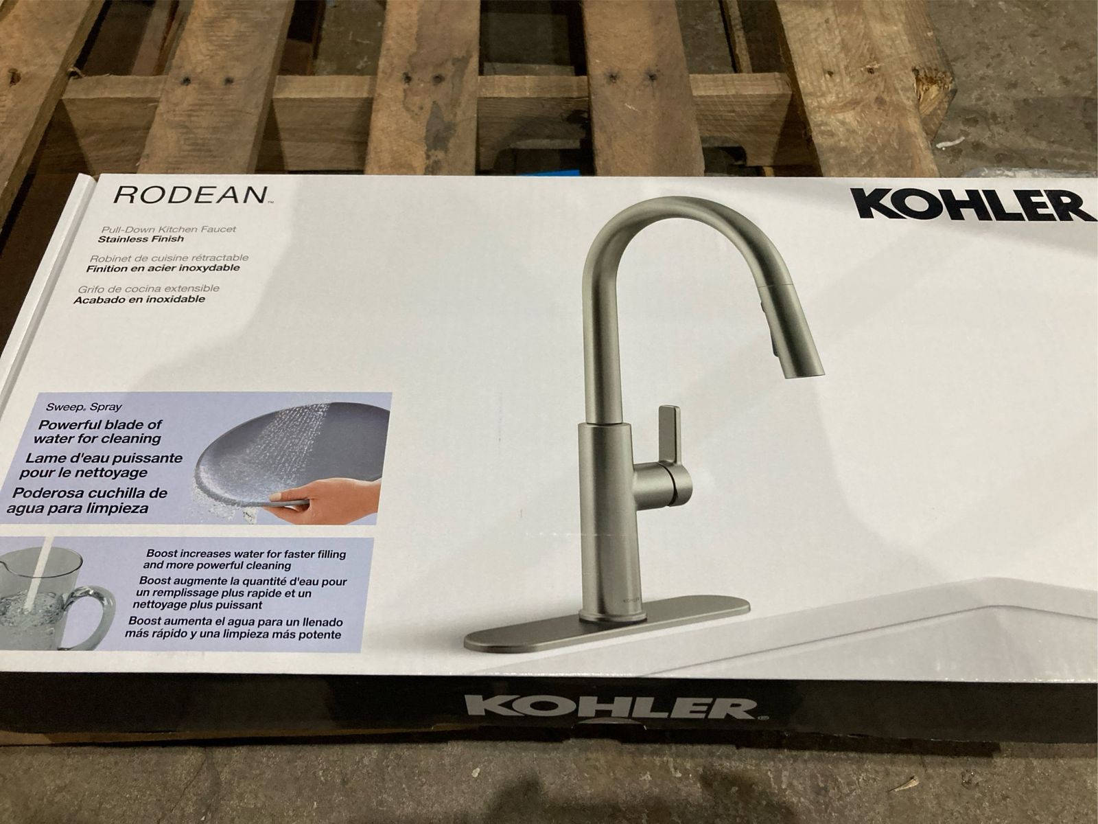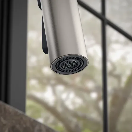 Two-function Pull-down Sprayhead: Aerated and Sweep® Spray. Sweep Spray Features a Wide, Powerful Blade of Water. Docknetik® Secure Docking System Locks Sprayhead into Place. Masterclean™ Sprayface Features an Easy-to-Clean Surface. Sensor Version Includes Touchless On/Off with a Wave of Your Hand or an Object Such as a Pan