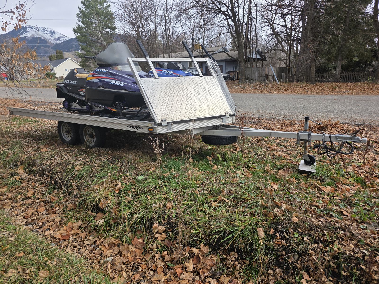 Venmo$3000 OBO; 2005 Yacht Club Hawkeye Aluminum 3 place Tandem Axle Snowmobile Trailer; Weighs about 1,000 lbs; Cargo allowed up to about 3,400 lbs; Could also haul many UTVs (would need to buy appropriate ramps); Inside deck with 101"; Deck length 14'; Nose length 2'; Tongue length 65"; Sleds and other trailer for sale; See my other listings; Located near Logan, UT