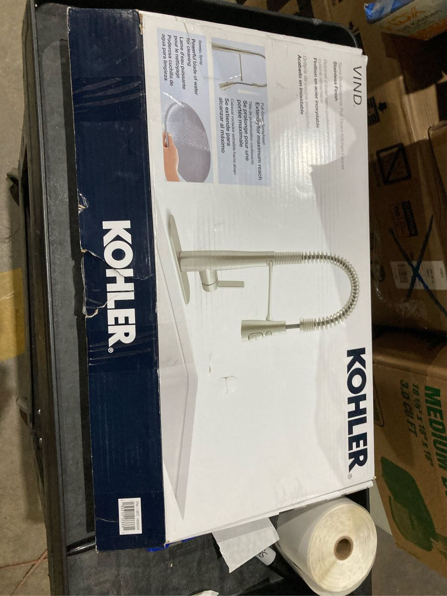 Features: Three-function Pull-down Sprayhead Sweep® Spray Sweeps Dishes and Sink Clean Aerated Stream Spray for Easy Filling or Rinsing Boost Spray Technology Increases Flow Rate 30% with Simple Button Press DockNetik® Secure Docking System Locks Sprayhead into Place Specifications Brand Kohler Faucet Type Single Handle Flow Rate 1.5 Gal/min Handle Type Lever Model R33911-VS Model R33911-CP Model R33911-BL Model R33911-2MB Mount Type Deck Mount Number of Faucet Holes 1 Sensor Activation No Sensor Weight 7.5 lb.
