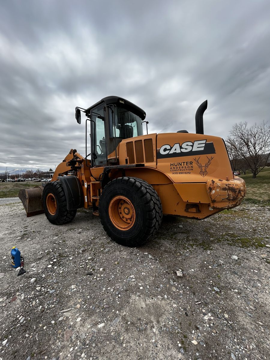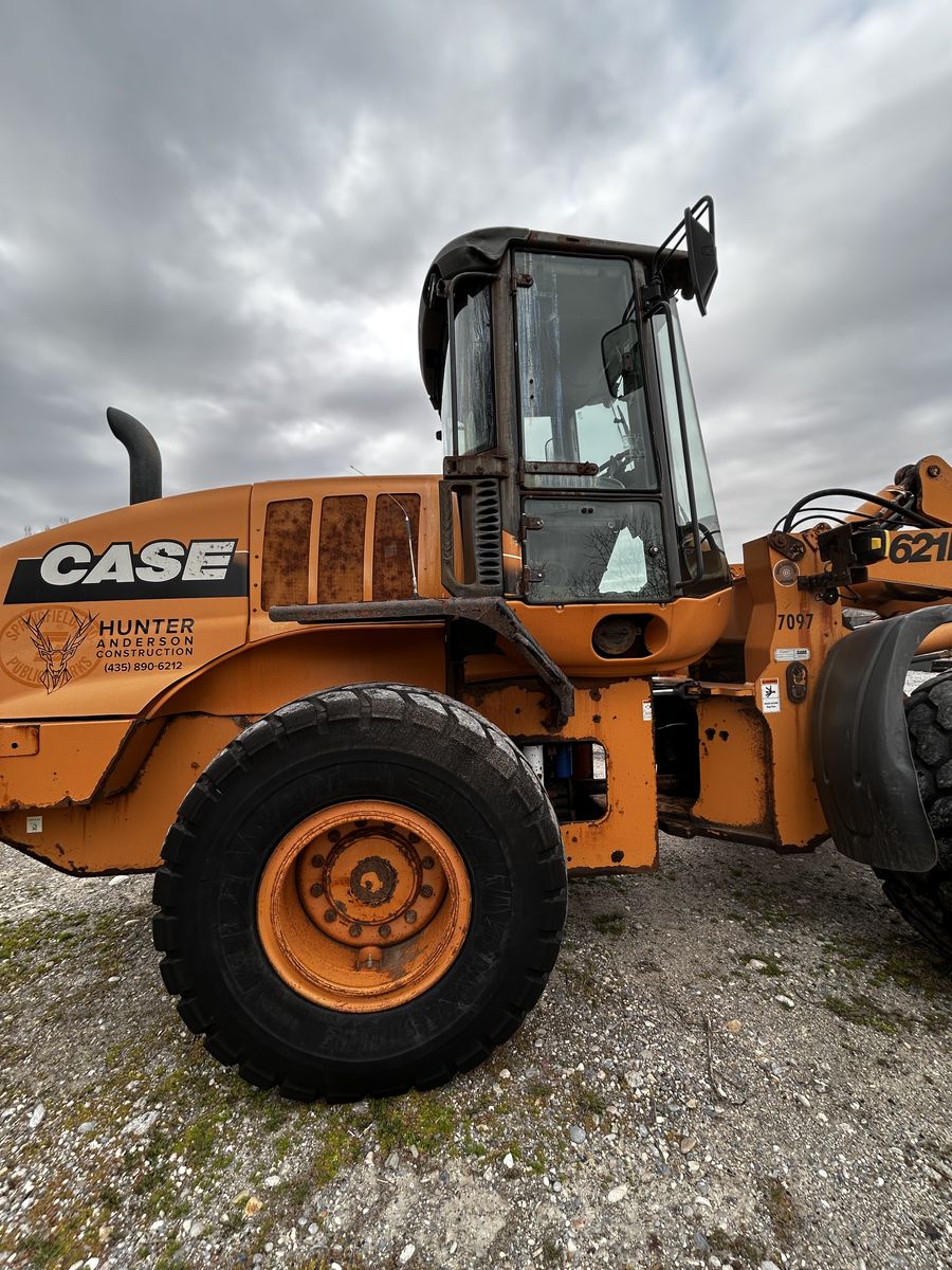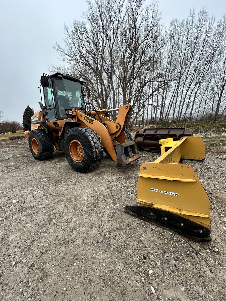 Great Loader good tires just under 6800 hours it’s rough around the edges but runs and operates great! I’ve used it for my small excavation company and for snow removal. It’s never let me down. has a hydraulic quick coupler, and accessory hydraulics, comes with 2.5 yard bucket, 12 foot snow box, forks, and grapple bucket message me if interested