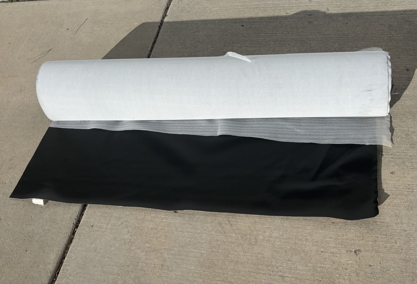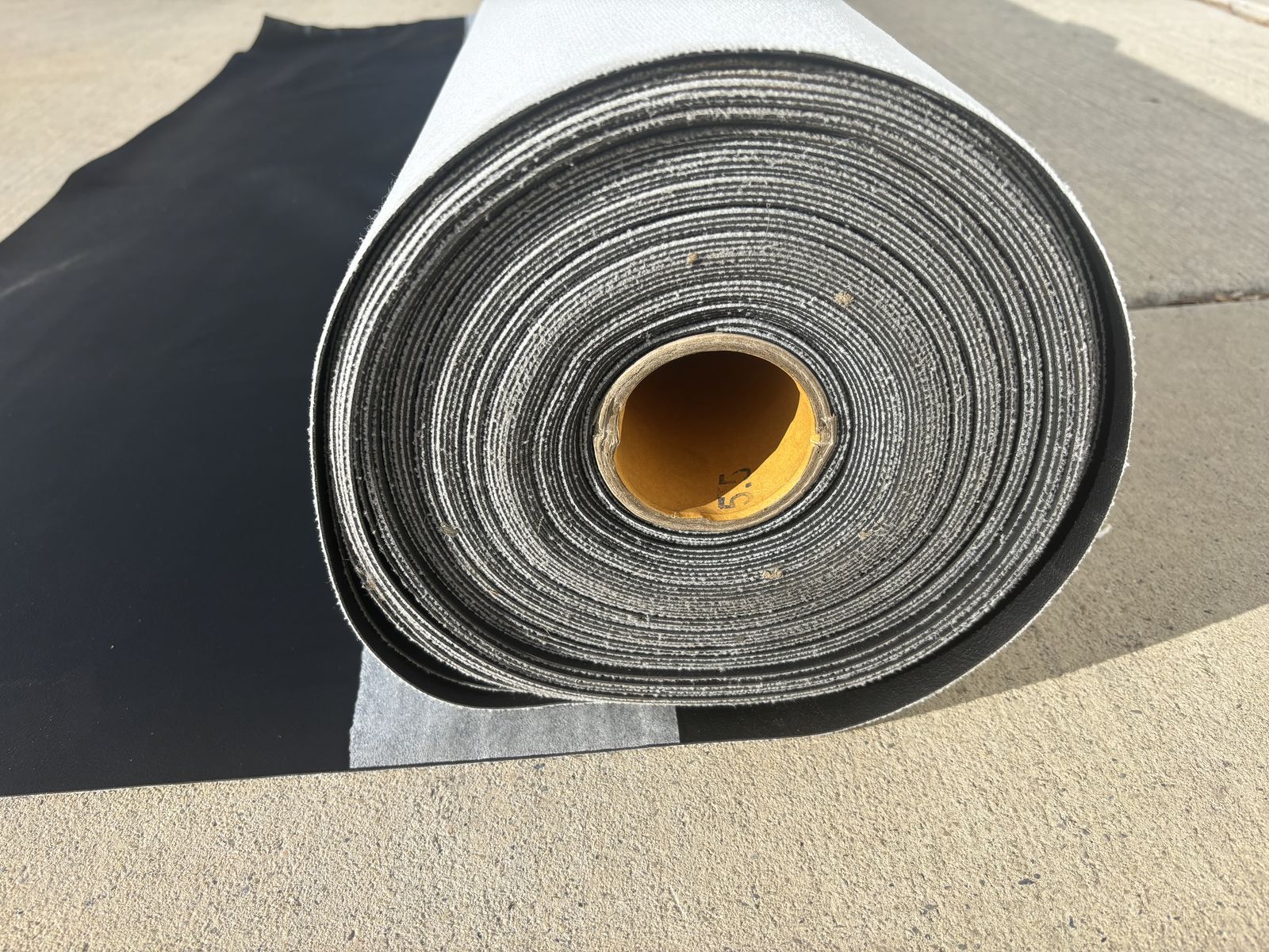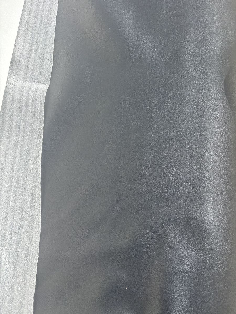 Description- Full roll of black faux leather fabric. This role is 55” wide by approximately 10” in diameter. My best guess is it is a 40 yard roll, but I’m not certain. See photos for more product information and specifications. Rest assured that it is a good true dark black color. The photos were taken in direct sunlight on my driveway so they are a little washed out.