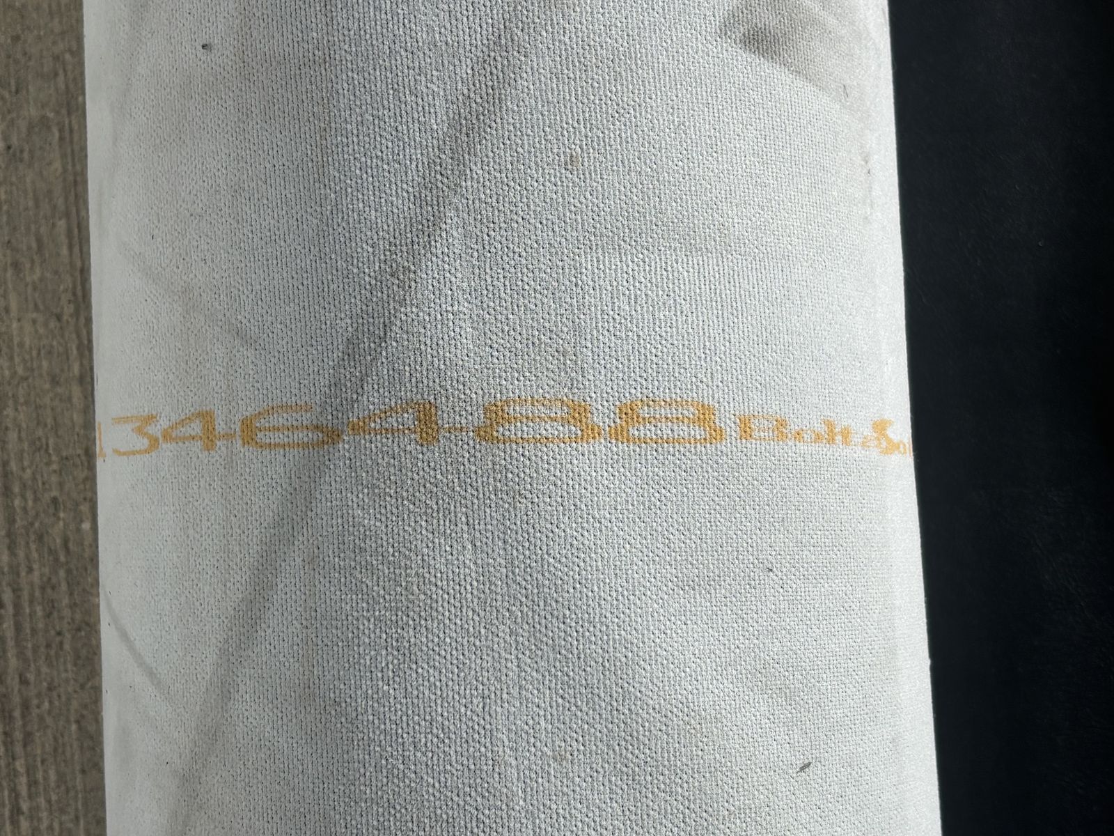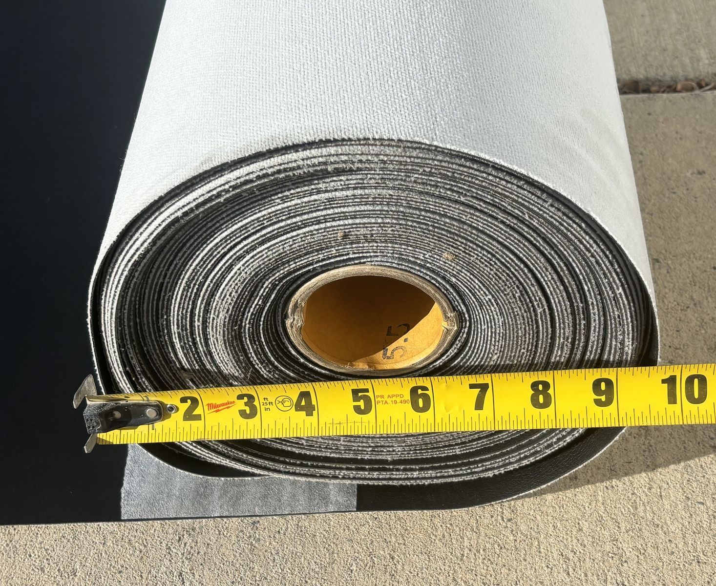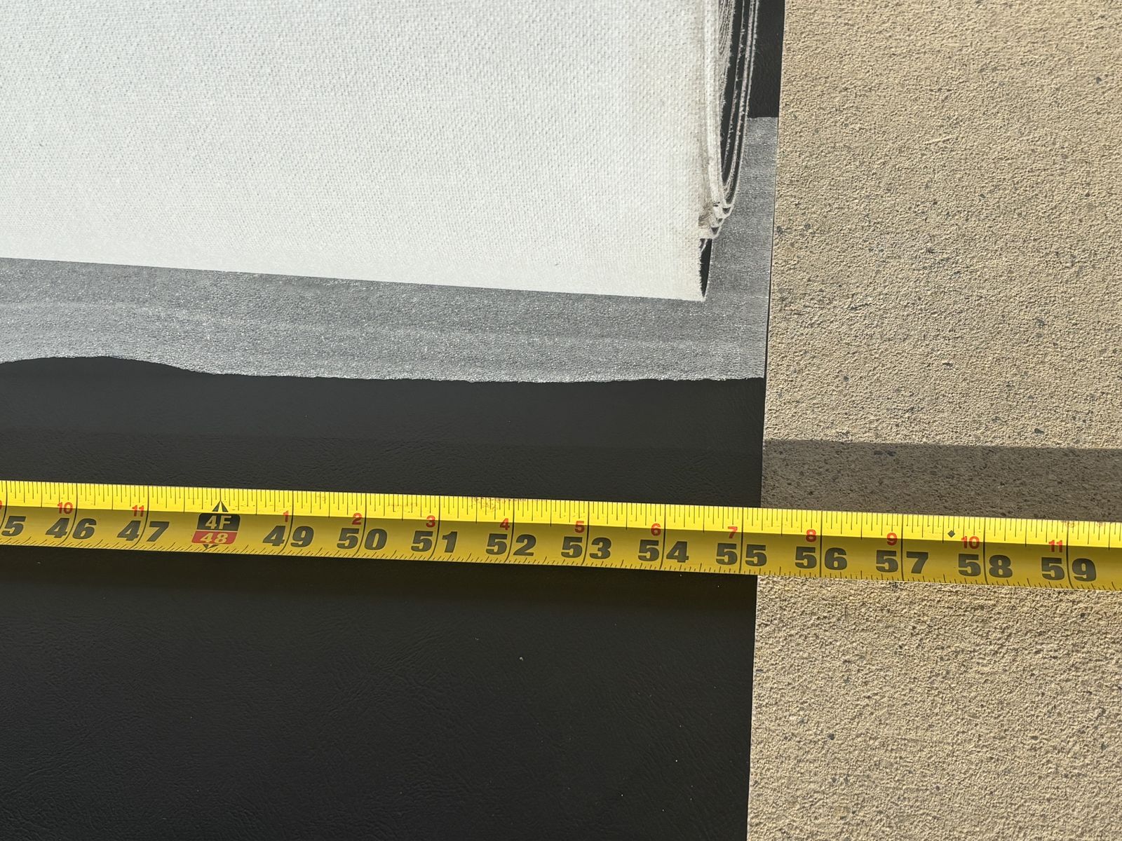 Description- Full roll of black faux leather fabric. This role is 55” wide by approximately 10” in diameter. My best guess is it is a 40 yard roll, but I’m not certain. See photos for more product information and specifications. Rest assured that it is a good true dark black color. The photos were taken in direct sunlight on my driveway so they are a little washed out.