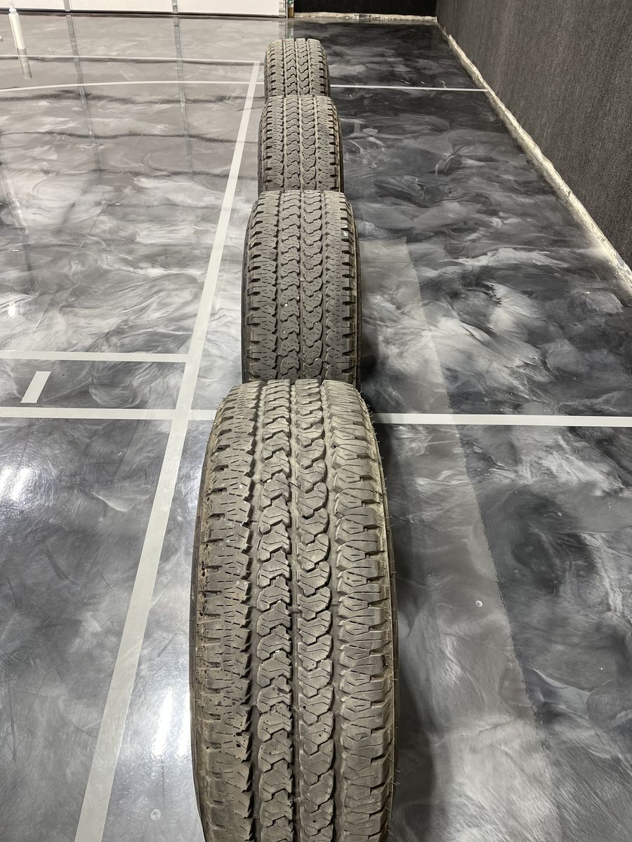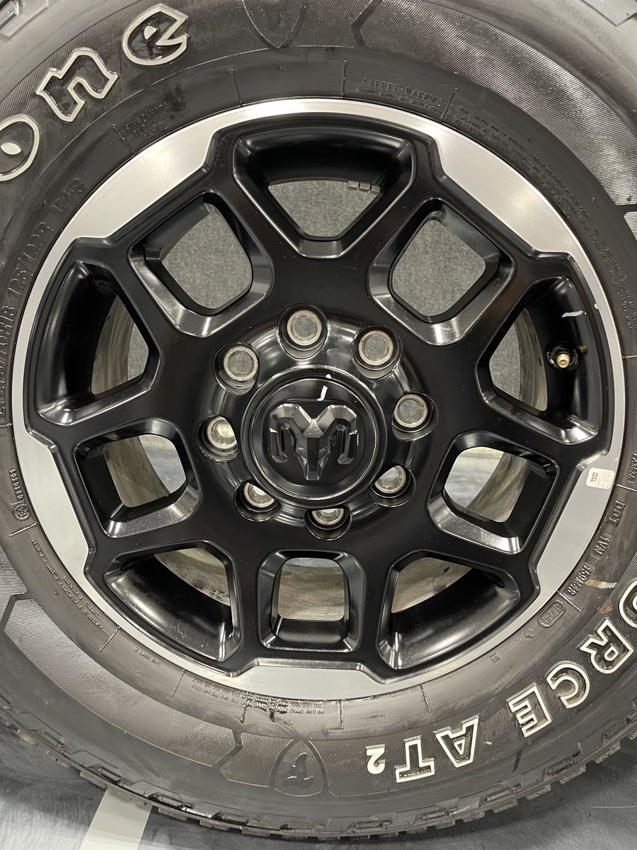 275/70 R 18 Firestone Transforce At with Oem Laramie Wheels 18" these tires Have around 14,000 miles no cupping or stepping very even wear quiet and ride great these tires have lots of life left.