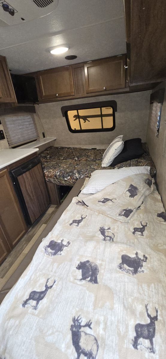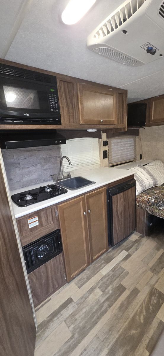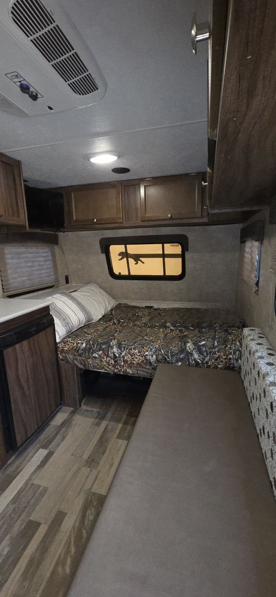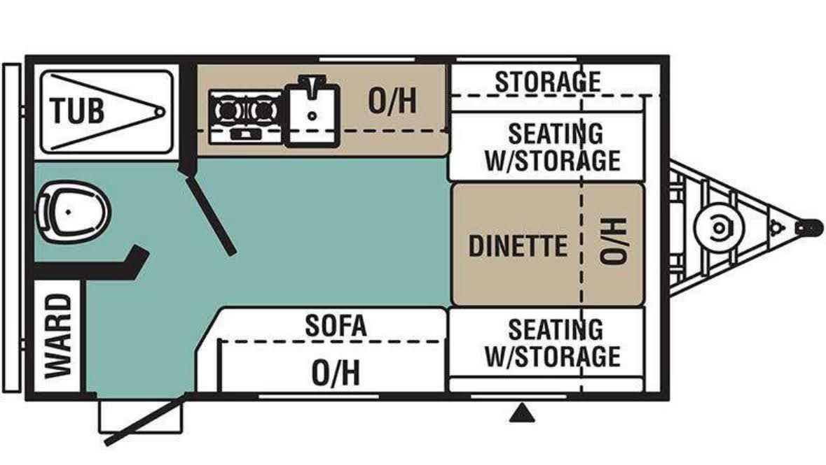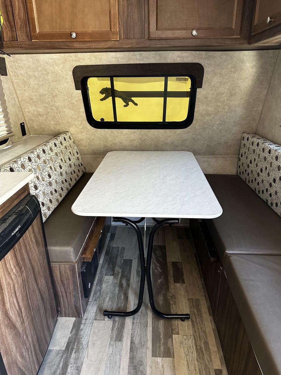 Compact but comfortable layout with dinette that converts to a bed, rear kitchen, and plenty of storage. Perfect for national parks, weekend camping, or road trips. Easy to tow, easy to park, and easy to store at home.