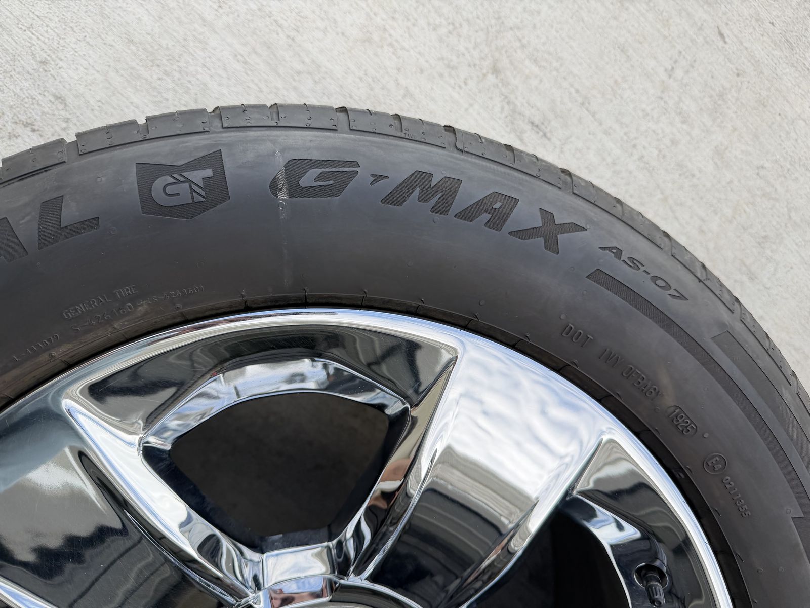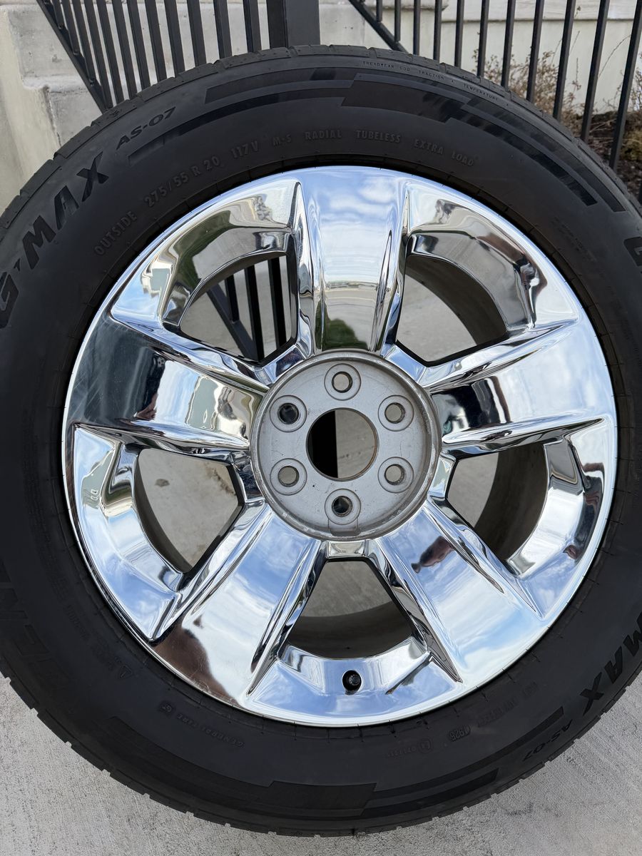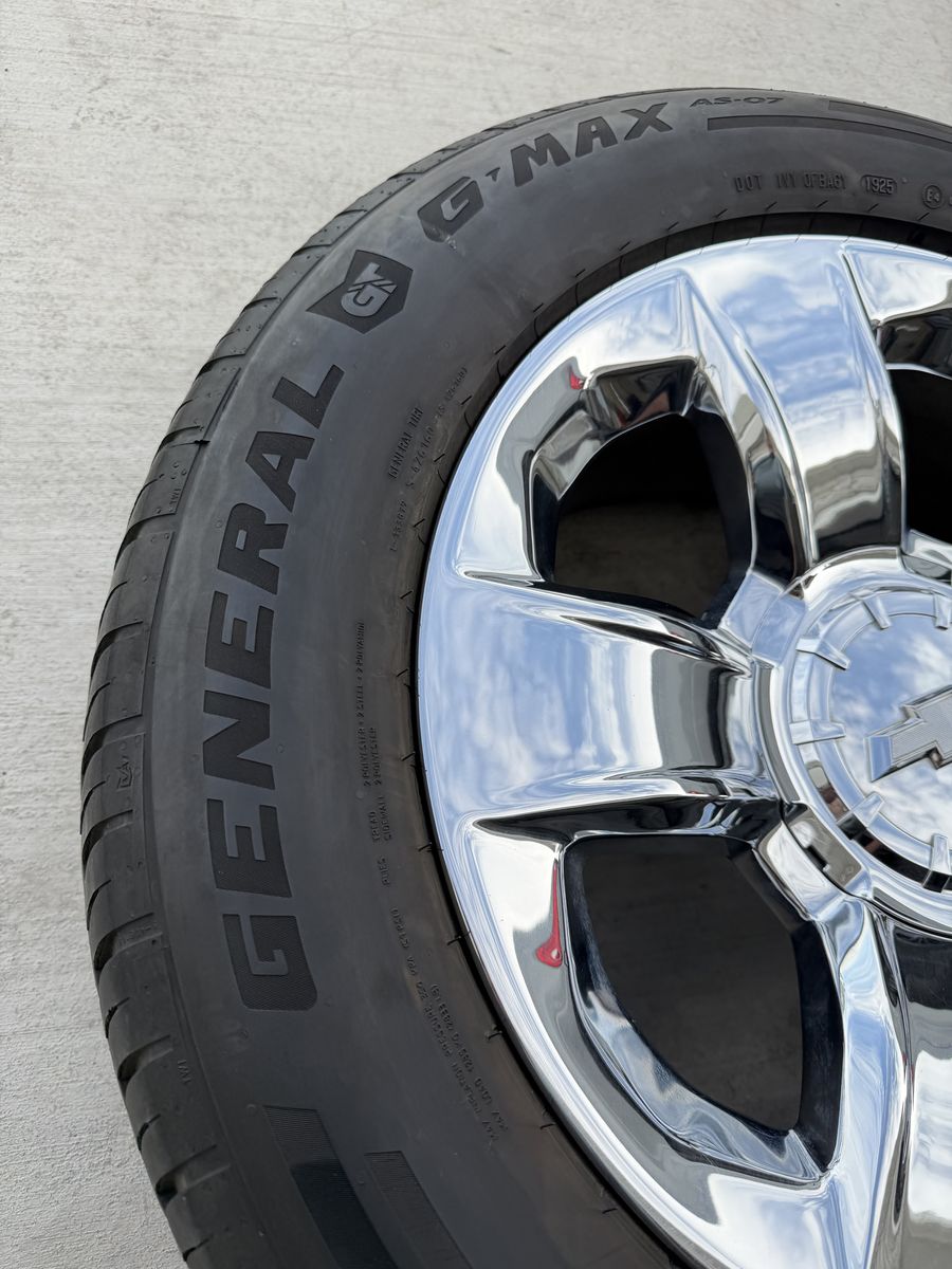ApplePaySet of 4-Chevy Silverado 1500 Suburban Rims and Tires 275/55R20 General G-Max like new in excellent asking $1300 obo Tires are like new Rims are almost new no curb rash Comes with lug nuts or sensors I can sell the rims or tires separately Bolt pattern 6-5.5 or 6-139.7 They will fit Chevy Silverado Tahoe suburban avalanche GMC sierra Yukon Text anytime 385-402-2292