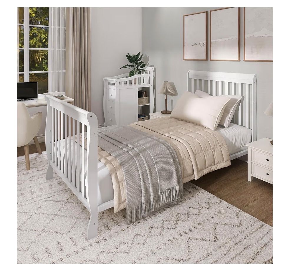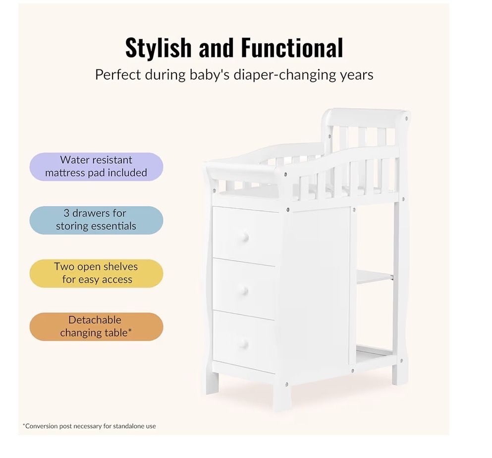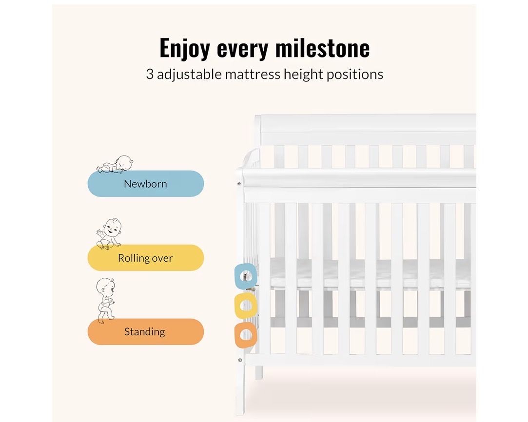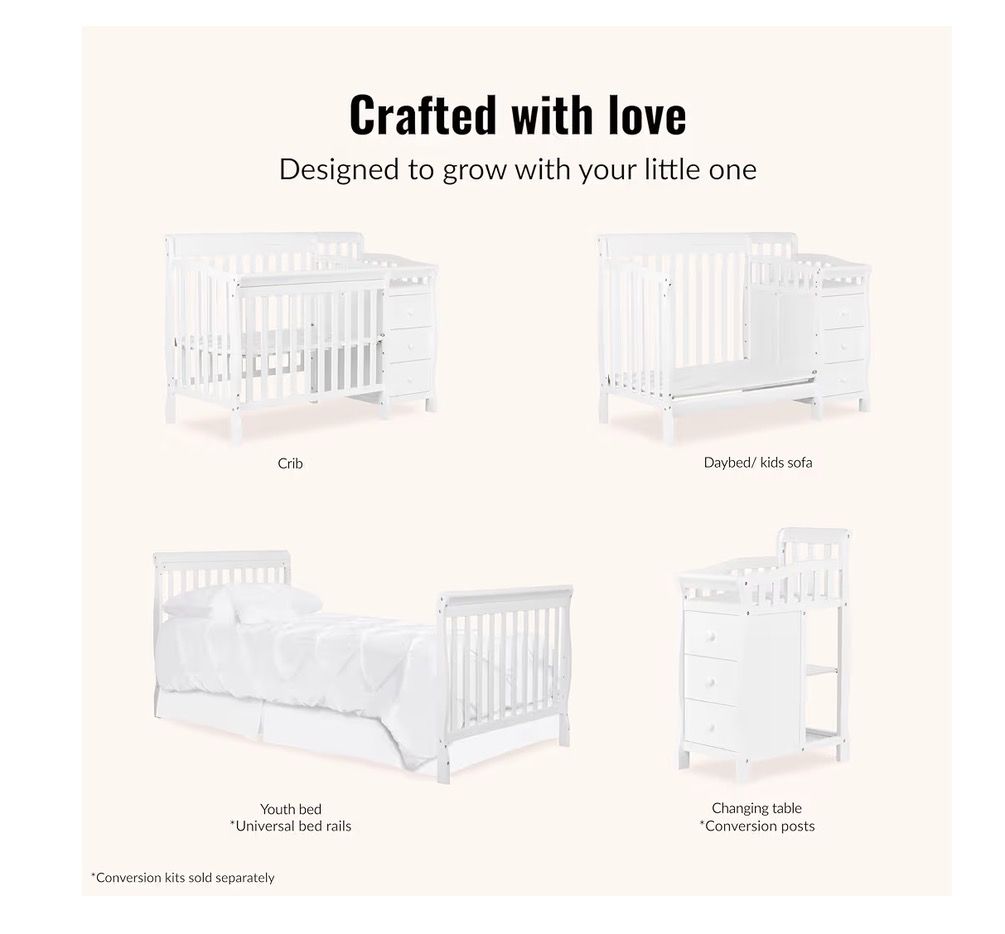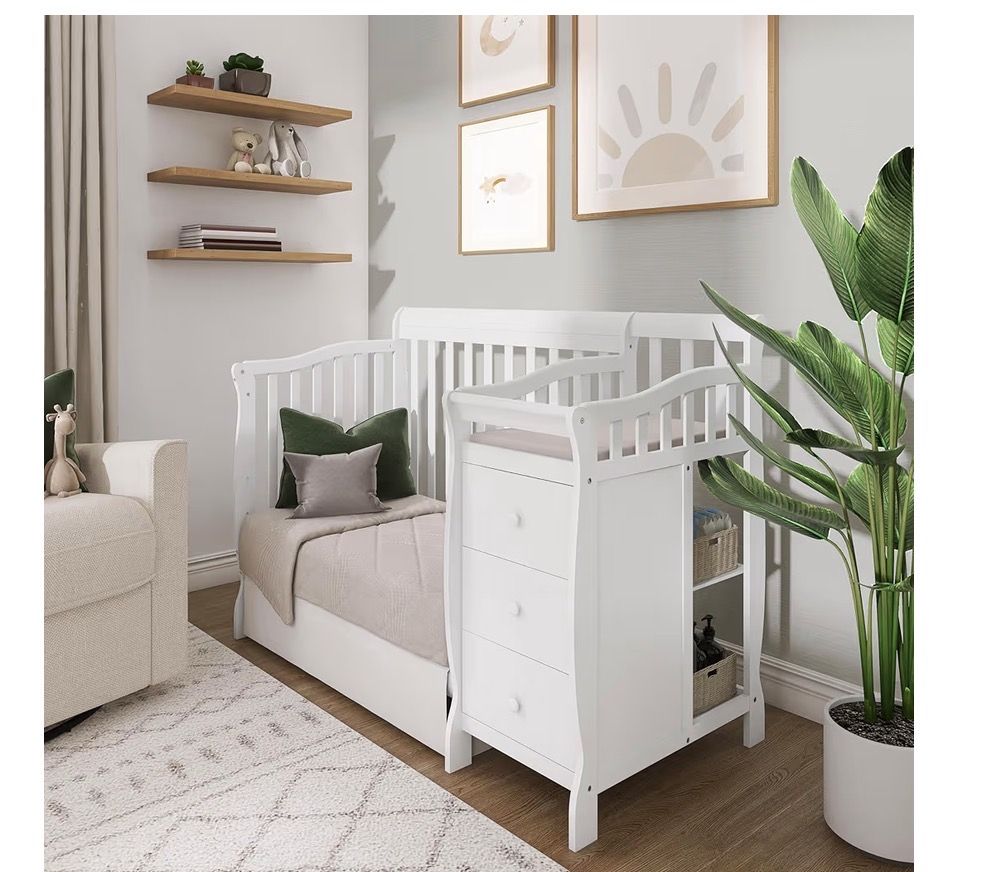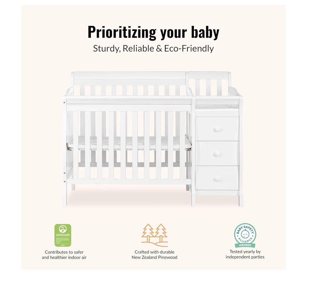 VenmoDream On Me Jayden 4‑in‑1 Mini Convertible Baby Crib & Changer with Storage in White, Pinewood, GreenGuard Gold & BSA, 1” Mattress Pad, 3 Mattress Heights, Converts to Mini Day & Twin-Size Bed