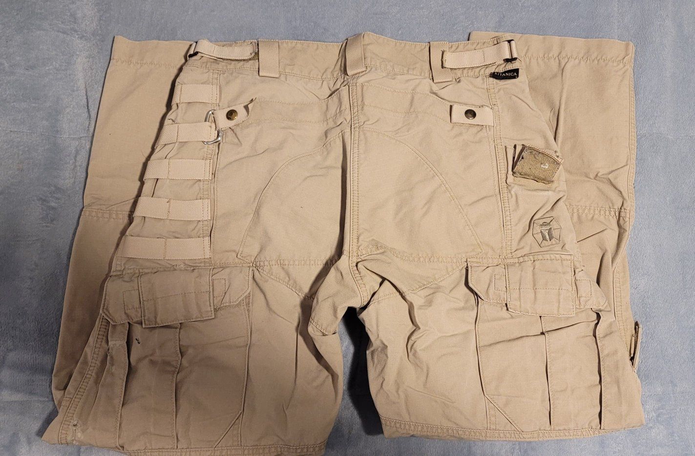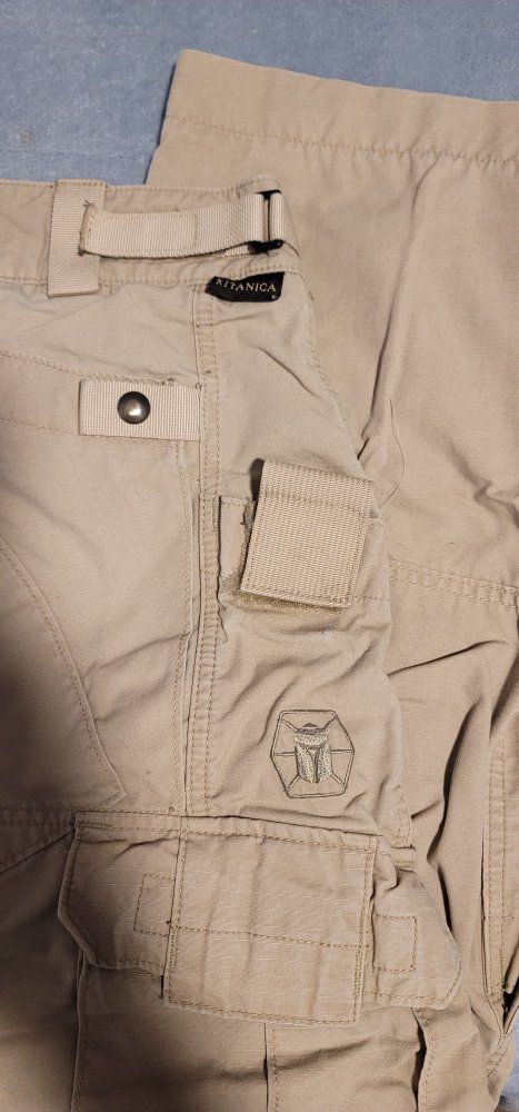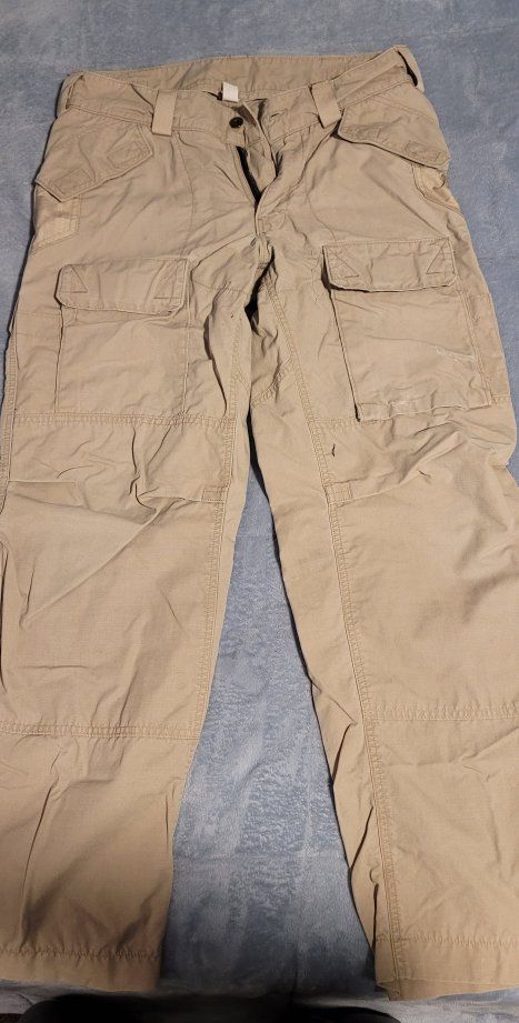 All pants are in good to great used condition. Most are in great shape. The Kitanica pair shows more wear but still has plenty of use left.